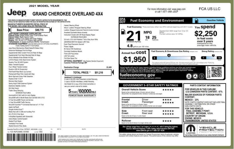 Used 2021 Jeep Grand Cherokee Overland 4x4 4dr SUV