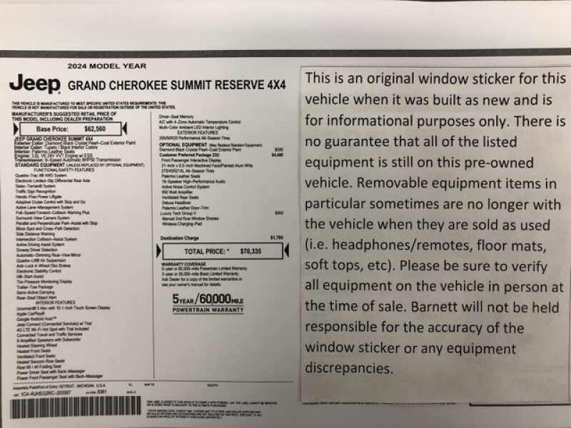 - QUICK ORDER PACKAGE 23U SUMMIT RESERVE -inc Engine 3.6L V6 24V VVT UPG I w/ESS Transmission 8-Speed Automatic 8HP50 950 Watt Amplifier Deluxe Headliner Palermo Leather Door Trim Summit Reserve Badge Ventilated Rear Seats Summit Reserve