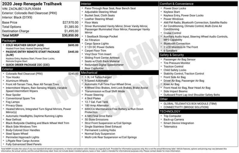 COME ON IN TO CORWIN Honda FOR OUR BLACK FRIDAY PRICING ALL MONTH LONG! TREMENDOUS LINEUP ON OUR OVER 200 PRE-OWNED VEHICLES AT ONE LOCATION!!! Recent Arrival! 2020 Colorado Red Clearcoat Jeep Renegade Trailhawk 4WD