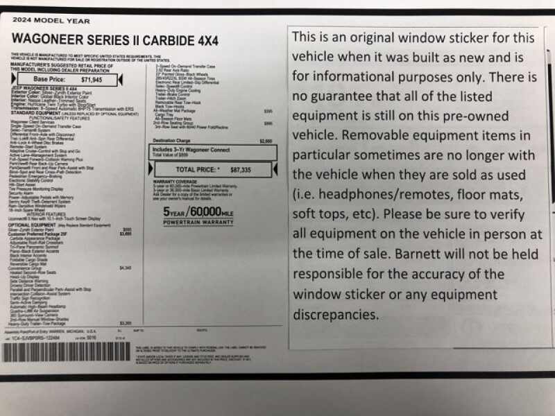 Listed selling price includes a $1000 Barnett Trade Bonus. Trade-in vehicles no more than 10 years old and 100K miles or less with a clean title automatically qualify. Trade-in vehicles outside these parameters need to be discussed and reviewed in person with the dealership to determine qualification.