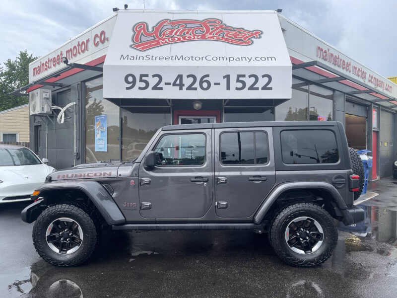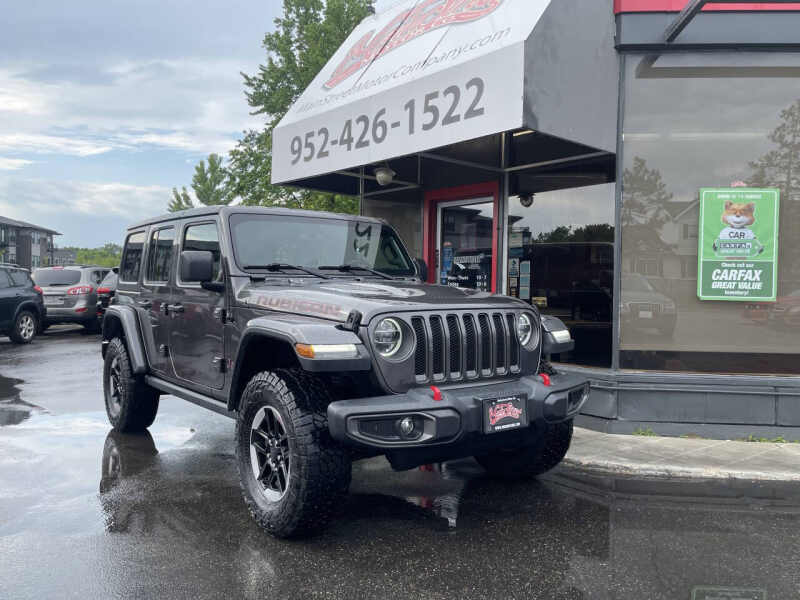 2018 Jeep Wrangler Rubicon the ultimate off-road SUV, equipped with a 3.6L V6 engine, 8-speed automatic transmission, and legendary 4X4 capability. With 95,483 miles, this Rubicon comes with a clean title, no accidents, and two previous owners. Its built for adventure and ready to conquer any terrain with confidence. As the top-tier Rubicon trim, this Wrangler features front and rear locking differentials, an electronic disconnecting sway bar, rock rails, off-road tires, and heavy-duty Dana 44 axles. Inside, enjoy premium features like a touchscreen infotainment system with Bluetooth, Apple CarPlay/Android Auto, navigation, backup camera, keyless entry and start, and removable roof and doors for open-air freedom. Whether you're hitting the trails or cruising around town, this Wrangler delivers iconic Jeep capability and style. We offer easy financing, available extended warranties, and nationwide shipping. Trades are welcome! Stop by 2021 Mainstreet, Hopkins, MN 55343 and take it for a spin today.