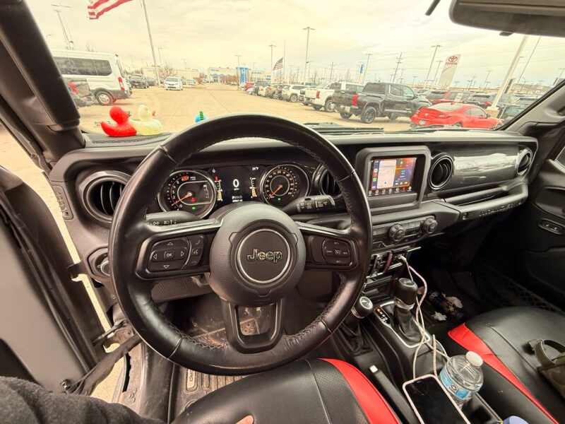 This Jeep Wrangler is well equipped and includes the following features and benefits, Backup Camera, Automatic Headlights, Apple CarPlay, Android Auto, Bluetooth Hands-Free, 4x4 / 4 Wheel Drive / AWD, 7.0 Touchscreen Display, Air Conditioning w/Auto Temperature Control, Air Filtering, Altitude Package, Apple CarPlay, Automatic Headlamps, Black 3-Piece Hard Top, Black Interior Accents, Black Trail Rated Badge, Body Color Grille w/Gloss Black Rings, Cluster 7.0 TFT Color Display, Deep Tint Sunscreen Windows, Front 1-Touch Down Power Windows, Google Android Auto, GPS Antenna Input, Heavy Duty Suspension w/Gas Shocks, Integrated Center Stack Radio, Leather Wrapped Steering Wheel, Matte Black Jeep Badge, MOPAR Hardtop Headliner, Power Heated Mirrors, Quick Order Package 22L Altitude, Radio Uconnect 4 w/7 Display, Remote Keyless Entry, Security Alarm, SiriusXM Satellite Radio, Speed Sensitive Power Locks, Sun Visors w/Illuminated Vanity Mirrors, Technology Group, USB Host Flip, Wheels 18 x 7.5 Gloss Black Aluminum, Wizard Black Instrument Panel Bezels, Wrangler Decal.