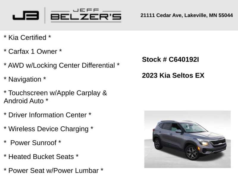 * Kia Certified * Carfax 1 Owner * AWD w/Locking Center Differential * 10.25-Inch Navigation Touchscreen w/Apple Carplay & Android Auto * Driver Information Center * Wireless Device Charging * Power Sunroof * Heated Bucket Seats * Power Seat w/Power Lumbar * Accident Free * Blind Spot * Rear Cross Traffic Alert * Lane Departure Warning * Autonomous Emergency Braking * Forward Collision Alert * Lane Keep Assist * Bluetooth Hands Free * Cruise Control * Alloy Wheels * LED Tail Lamps * Push Button Start w/Smart Key * Automatic Climate Control * Rear Camera * Satellite Radio *