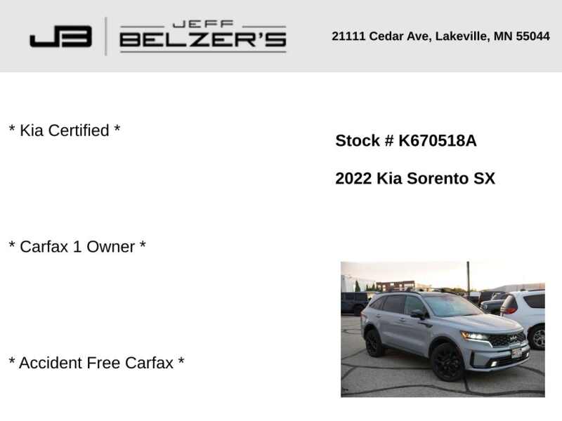 * Kia Certified * Carfax 1 Owner * Accident Free Carfax *. 2022 Kia Sorento SX AWD