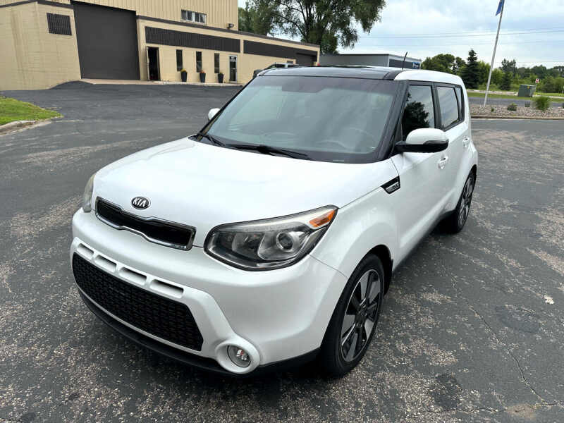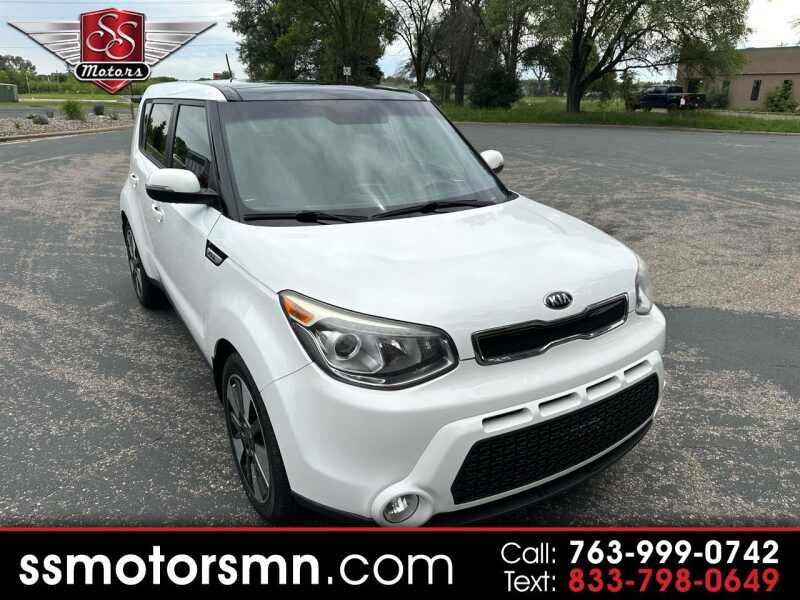 Recent Arrival! **NON-SMOKER**, **ACCIDENT FREE**, **HEATED SEATS**, **BACKUP CAMERA**, **RUST FREE**, **2 OWNERS**, **LEATHER**, **NAVIGATION**.23/31 City/Highway MPGClear White 2015 Kia Soul Exclaim FWD 6-Speed Automatic I4We are open for all your Auto Body, Service and Sales needs! Complete indoor in person and online buying experience available!We do prefer to work by appointment to ensure vehicle is onsite and in our indoor showroom for you, call 763-999-0742 to confirm availability before coming out to our indoor showroom!Awards * JD Power Initial Quality Study (IQS), Initial Quality Study (IQS) * 2015 KBB.com Best Buy Awards Finalist * 2015 KBB.com 15 Best Family Cars * 2015 KBB.com 10 Coolest New Cars Under $18,000 Visit SS Motors online at ssmotorsmn.com to see more pictures of this vehicle or call us at 763-999-0742 today to schedule your test drive.