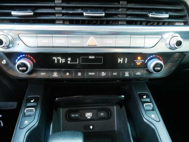 EX trim. CARFAX 1-Owner, Kia Certified. EPA 24 MPG Hwy/19 MPG City! Heated/Cooled Leather Seats, Third Row Seat, Moonroof, Nav System, NIGHTFALL EDITION PACKAGE, EX PREMIUM PACKAGE, Quad Bucket Seats, All Wheel Drive SEE MORE!