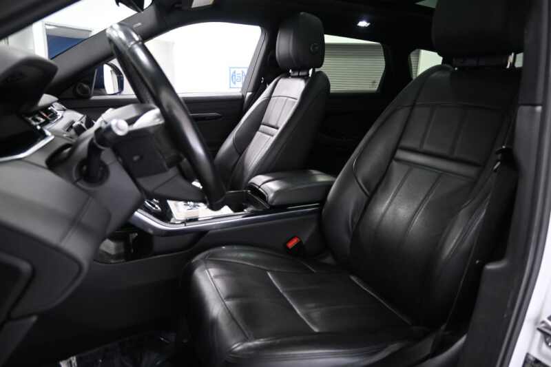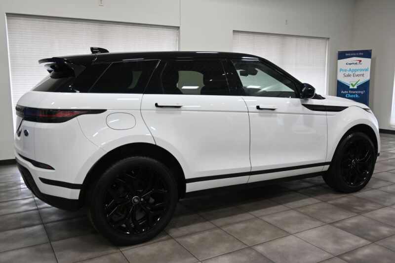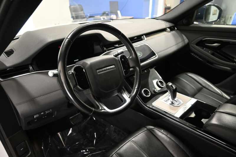This 2020 Land Rover Range Rover Evoque SE is a non-smoker, 1-owner vehicle with no accidents reported and a documented service history, reflecting excellent care and ownership. Stylish and well-equipped, it rides on 20-inch gloss black split-spoke wheels and features a striking black contrast roof with a sliding panoramic roof. Loaded with premium options, it includes the Cold Climate Convenience Package with heated windshield, heated washer jets, and a heated steering wheel. The Drive Package adds advanced safety and driver-assist features such as blind spot assist, reverse traffic detection, adaptive cruise control with stop-and-go, and high-speed emergency braking. Inside, the cabin is finished with natural gray ash trim, an Ebony headliner, and the innovative ClearSight interior rearview mirror. Additional highlights include SiriusXM and HD radio, keyless entry, front fog lights, and multiple convenience and protection accessories including interior storage, floor mats, wheel protection, and rear-seat click-and-go accessories. Combining modern design, luxury comfort, and advanced technology, this Evoque SE delivers a refined and confident driving experience.