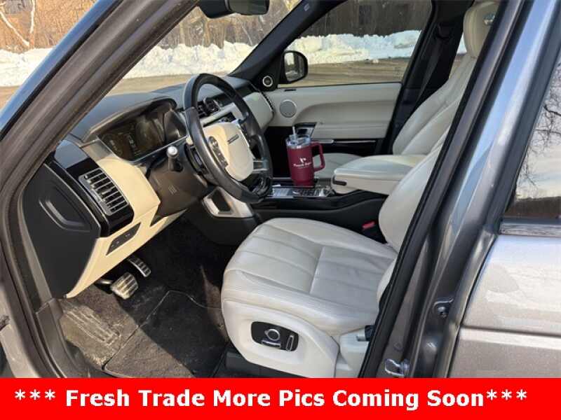 This Range Rover is well equipped with Ivory/Brogue/Ivory/Ivory w/Full Semi-Aniline Leather Seat Trim, 13 Speakers, 4-Wheel Disc Brakes, ABS brakes, Adaptive suspension, Air Conditioning, Alloy wheels, AM/FM radio, Anti-whiplash front head restraints, Auto tilt-away steering wheel, Auto-dimming door mirrors, Auto-dimming Rear-View mirror, Auto-leveling suspension, Automatic temperature control, Brake assist, Bumpers body-color, CD player, Compass, Delay-off headlights, Door auto-latch, Driver door bin, Driver vanity mirror, Driver's Seat Mounted Armrest, Dual front impact airbags, Dual front side impact airbags, DVD-Audio, Electronic Stability Control, Emergency communication system InControl Protect, Exterior Parking Camera Rear, Four wheel independent suspension, Front anti-roll bar, Front Bucket Seats, Front Center Armrest w/Storage, Front dual zone A/C, Front fog lights, Front reading lights, Full Oxford Perforated Leather Seat Trim, Fully automatic headlights, Garage door transmitter HomeLink, Genuine wood console insert, Genuine wood dashboard insert, Genuine wood door panel insert, Headlight cleaning, Heated door mirrors, Heated Front Bucket Seats, Heated front seats, Heated rear seats, Heated steering wheel, High intensity discharge headlights Bi-Xenon, Illuminated entry, Low tire pressure warning, Memory seat, Navigation System, Occupant sensing airbag, Outside temperature display, Overhead airbag, Overhead console, Panic alarm, Passenger door bin, Passenger seat mounted armrest, Passenger vanity mirror, Power door mirrors, Power driver seat, Power moonroof, Power passenger seat, Power steering, Power windows, Premium audio system Meridian, Radio data system, Radio 380 Watt Meridian Audio w/10.2 Touchscreen, Rain sensing wipers, Rear air conditioning, Rear anti-roll bar, Rear fog lights, Rear reading lights, Rear seat center armrest, Rear window defroster, Rear window wiper, Remote keyless entry, Security system, Speed control, Speed-sensing steering, Speed-Sensitive Wipers, Split folding rear seat, Steering wheel memory, Steering wheel mounted A/C controls, Steering wheel mounted audio controls, Tachometer, TBD Axle Ratio, Telescoping steering wheel, Tilt steering wheel, Traction control, Trip computer, Turn signal indicator mirrors, Variably intermittent wipers, Ventilated front seats, Weather band radio, and Wheels 21 10 Spoke Alloy - Style 101.