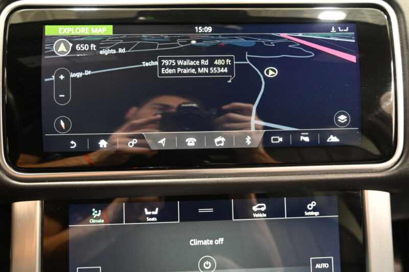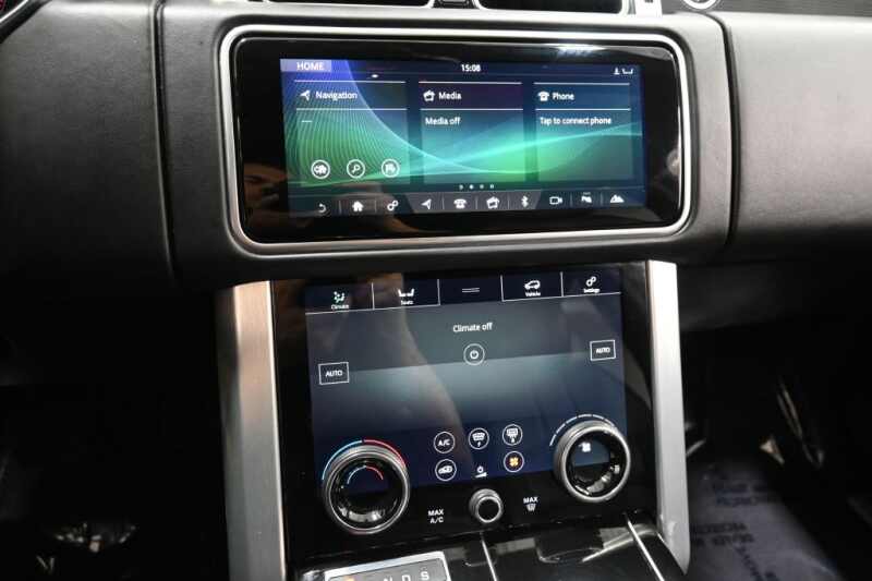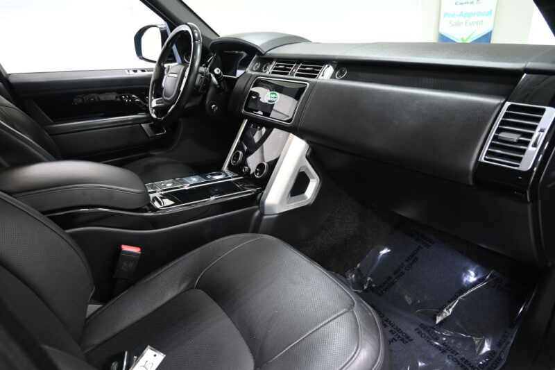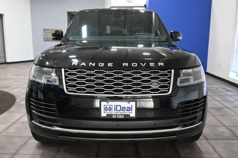This 2018 Land Rover Range Rover Supercharged LWB is a non-smoker personal vehicle with a strong service history, now available at iDeal Auto Imports in Eden Prairie, Minnesota, near Minneapolis. Finished in stunning Santorini Black Metallic with an upscale Ebony/Ivory Windsor leather interior, this long-wheelbase luxury SUV delivers exceptional comfort, performance, and prestige. Equipped with stylish 21-inch split-spoke diamond-turned wheels, this Range Rover is loaded with premium features including a heated windshield, wood-and-leather steering wheel, four-zone climate control, configurable ambient lighting, panoramic roof, and Grand Black veneer interior trim. Advanced technology highlights include a surround camera system, head-up display, navigation, Bluetooth connectivity, WiFi hotspot, and premium sound system. Enjoy first-class luxury with heated front and rear seats, heated steering wheel, power liftgate, hands-free entry, seat memory, and a full suite of driver-assist features such as blind spot monitoring, cross-traffic alert, lane departure warning, and rear parking sensors. This Range Rover is the perfect choice for anyone searching for a Range Rover Supercharged LWB for sale in Eden Prairie, a luxury SUV near Minneapolis, or a well-maintained Land Rover in Minnesota. All vehicles at iDeal Auto Imports are stored indoors, fully inspected, include a free CARFAX report, and we offer easy financing and nationwide shipping. Call or text 952-833-9000 today!