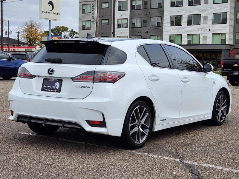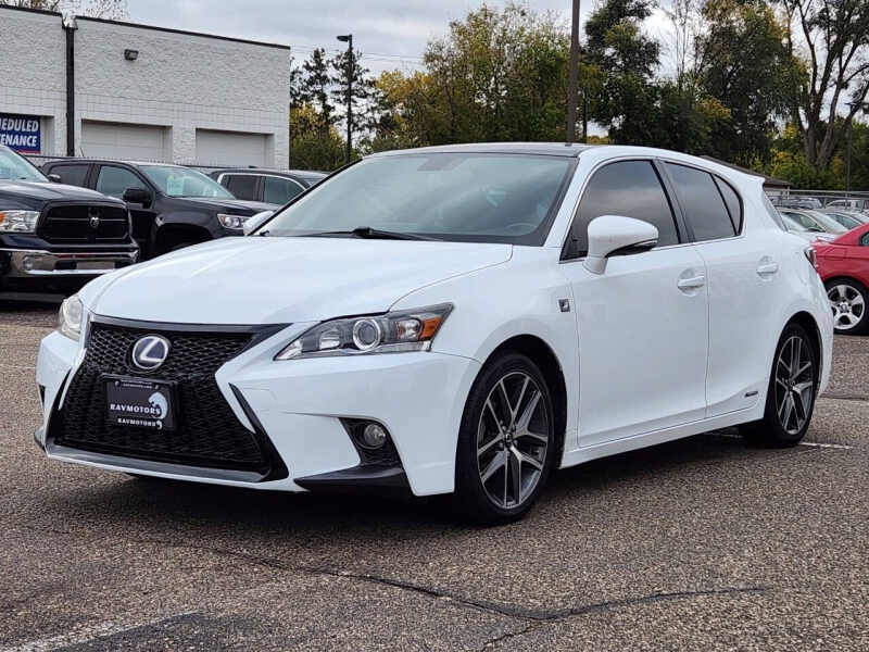This vehicle is located at our Crystal store. Enjoy luxury, efficiency, and sporty style all in one with this 2014 Lexus CT 200h F Sport a premium hybrid hatchback that combines Lexus craftsmanship with Toyotas proven hybrid technology for an exceptional driving experience. Powered by a 1.8-liter four-cylinder engine paired with an electric motor, it delivers smooth, quiet performance and outstanding fuel economy, making it perfect for both city commutes and long highway drives. The exterior stands out with its bold spindle grille, sharp lines, and sleek profile, while the interior offers a refined cabin featuring soft-touch materials, premium leather seating, a power moonroof, dual-zone climate control, and an advanced infotainment system with Bluetooth connectivity. The CT 200h doesnt just look good its also built to keep you safe with features like stability control, multiple airbags, and Lexuss renowned reliability and build quality. Agile handling, a comfortable ride, and impressive efficiency make this 2014 Lexus CT 200h the ideal choice for drivers who want luxury and practicality wrapped in one stylish, eco-friendly package. Come on down to RavMotors of Crystal to test-drive our cars! We'll be happy to help you find the right car at the right price. Call for vehicle availability at 763-401-4242 or email us at ravmotorsofcrystalgmail.com. Make sure to check out our inventory at www.ravmotors.com We stand behind all of our cars. We are open from 1000 AM - 700 PM on Monday-Thursday and 1000 AM - 600 PM on Friday-Saturday.