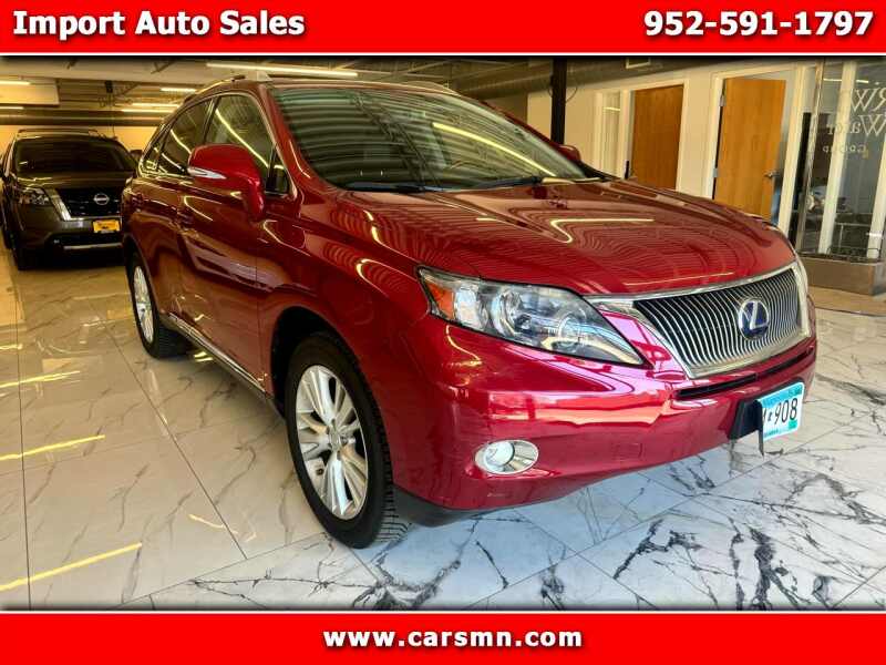 Get ready to roll in style with this sleek Red 2010 Lexus RX 450h! Powered by a 3.5L V6 hybrid engine and front/rear HO permanent magnet electric motors, this beauty packs a punch while being easy on the environment. The Electric all-wheel-drive control system ensures you can handle any road with ease, while the McPherson strut front suspension and double wishbone rear suspension provide a smooth ride.Slide into the 10-way power-adjustable leather seats and take hold of the leather-wrapped steering wheel as you navigate the world with ease. The organic white light-emitting diode display keeps you informed, while the interior lighting creates a cozy atmosphere. With safety features like all-position 3-point seat belts, front seat knee airbags, and child safety rear door locks, you can hit the road with peace of mind.Turn heads with the exclusive hybrid front grille design and integrated fog lamps, while the UV ray-reducing window glass keeps you cool and protected. Whether you're running errands or hitting the open road, this Lexus RX 450h has everything you need for a stylish and eco-friendly ride. Experience luxury and performance in one gorgeous package! Visit Import Auto Sales online at www.carsmn.com view more details and view other inventory or call us at 952-591-1797 today for vehicle availability.