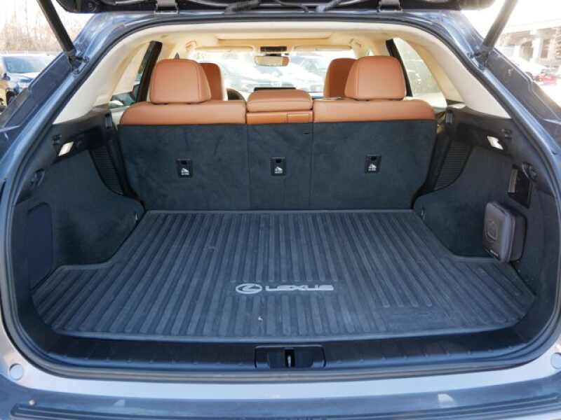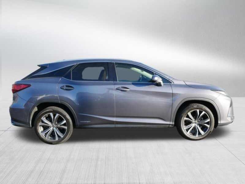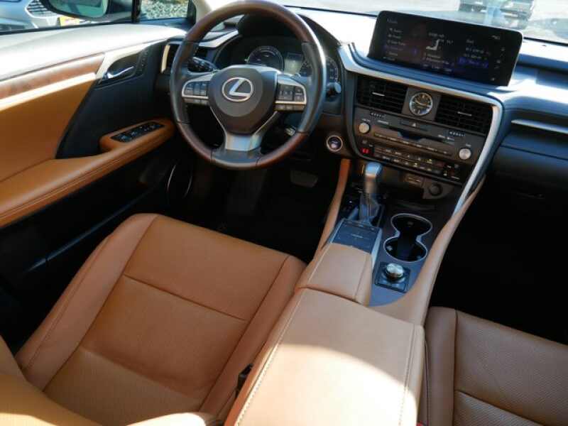 All Wheel Drive, Power Liftgate, Hybrid. Rear Spoiler, MP3 Player, Keyless Entry, Remote Trunk Release, Privacy Glass, Steering Wheel Controls, Child Safety Locks. Lexus RX 450h with Nebula Gray Pearl exterior and GLAZED CARAMEL interior features a V6 Cylinder Engine with 308 HP at 6000 RPM*. Panoramic Roof, Cooled Driver Seat, Back-Up Camera, Satellite Radio, iPod/MP3 Input, CD Player, Onboard Communications System, Remote Engine Start, Apple CarPlay, WiFi Hotspot, Smart Device Integration, Bucket Seats, Seat Memory, Rain Sensing Wipers, Vehicle Anti-Theft System, Trip Computer. Dual Zone A/C, Heated Mirrors, Electrochromic rearview mirror, Mirror Memory, Adaptive Cruise Control Safety equipment includes Cross-Traffic Alert, Blind Spot Monitor, Lane Keeping Assist, Electronic Stability Control, Brake Assist, 4-Wheel ABS, Tire Pressure Monitoring System, 4-Wheel Disc Brakes.