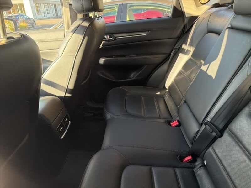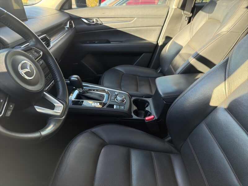 This Mazda CX-5 is well equipped with GT Premium Package (Active Driving Display (Windshield Type), Automatic Power Folding Side Mirrors, Heated Rear Seats, Heated Steering Wheel, Ventilated Front Seats, and Windshield Wiper De-Icer), 10 Speakers, 4-Wheel Disc Brakes, 4.624 Axle Ratio, ABS brakes, Air Conditioning, Alloy wheels, AM/FM radio SiriusXM, AppLink/Apple CarPlay and Android Auto, Auto High-beam Headlights, Auto-dimming Rear-View mirror, Automatic temperature control, Bose 10-Speaker Premium Audio Sound System, Brake assist, Bumpers body-color, Delay-off headlights, Driver door bin, Driver vanity mirror, Dual front impact airbags, Dual front side impact airbags, Electronic Stability Control, Emergency communication system MAZDA CONNECT, Exterior Parking Camera Rear, Four wheel independent suspension, Front anti-roll bar, Front Bucket Seats, Front Center Armrest, Front dual zone A/C, Front fog lights, Front reading lights, Fully automatic headlights, Garage door transmitter HomeLink, Heated door mirrors, Heated Front Bucket Seats, Heated front seats, Illuminated entry, Leather Seat Trim, Leather Shift Knob, Low tire pressure warning, Memory seat, Occupant sensing airbag, Outside temperature display, Overhead airbag, Overhead console, Panic alarm, Passenger door bin, Passenger vanity mirror, Power door mirrors, Power driver seat, Power Liftgate, Power moonroof, Power passenger seat, Power steering, Power windows, Radio data system, Radio AM/FM/HD Audio System, Rain sensing wipers, Rear anti-roll bar, Rear reading lights, Rear seat center armrest, Rear window defroster, Rear window wiper, Remote keyless entry, Snowflake White Pearl Mica Paint, Speed control, Speed-sensing steering, Split folding rear seat, Spoiler, Steering wheel mounted audio controls, Tachometer, Telescoping steering wheel, Tilt steering wheel, Traction control, Trip computer, Turn signal indicator mirrors, Variably intermittent wipers, and Wheels 19 x 7J Aluminum Alloy.