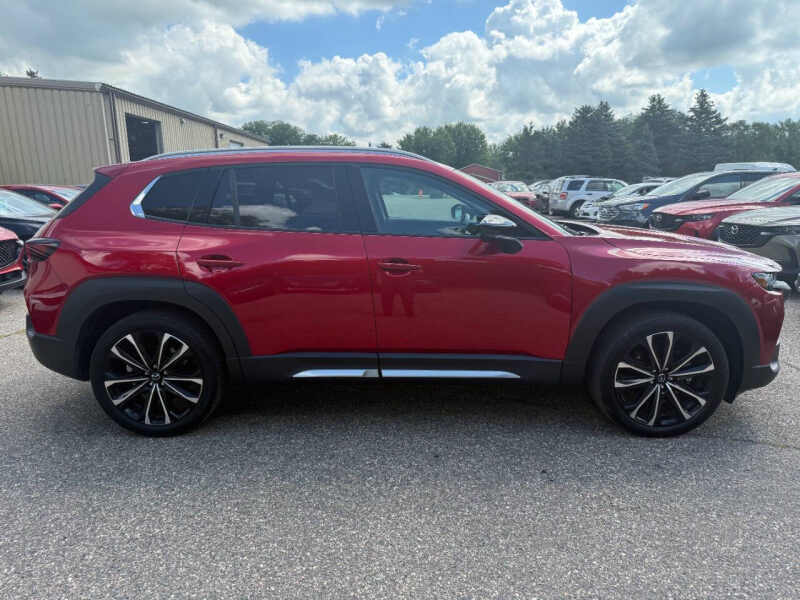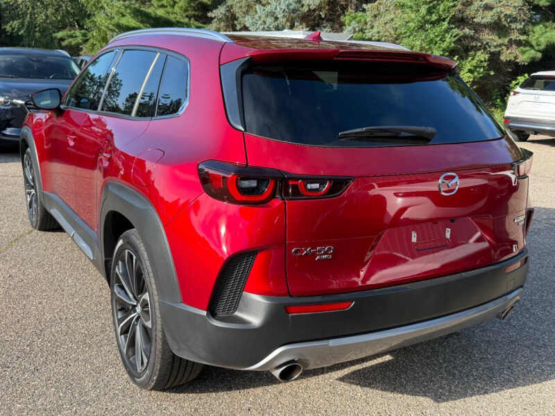For sale 2025 Mazda CX-50 Turbo Premium AWD a bold, stylish SUV that delivers power, comfort, and all-weather confidence. Equipped with a 2.5L turbocharged engine, i-ACTIV AWD, and a premium interior loaded with features. Highlights - 2.5L Turbocharged engine responsive & efficient - Automatic transmission w/ paddle shifters - i-ACTIV AWD confident handling in all conditions - Premium leather interior, heated/ventilated seats - Panoramic moonroof - Bose premium audio system - Wireless Apple CarPlay & Android Auto - Full suite of i-Activsense safety features - Hands-free power liftgate, keyless entry/start Smooth ride, upscale feel, and sharp design this CX-50 is built for drivers who want performance and refinement. Please note This vehicle has a rebuilt (prior salvage) title. It was professionally repaired and has passed MN state inspection, and it runs and drives like new. Contact us today to schedule a test drive!
