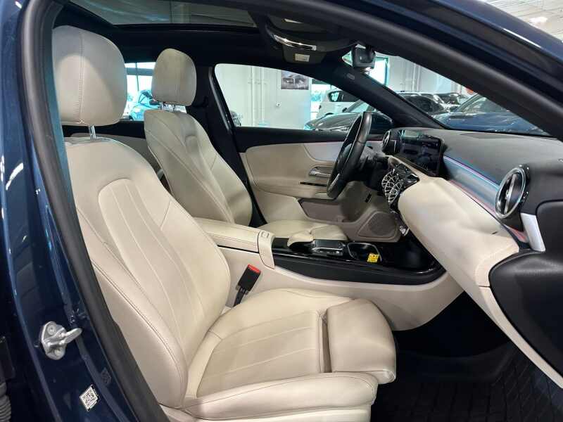 2021 Mercedes-Benz A-Class A 220 4MATIC AMG Line Package, P1 Premium Package, Night Package, KEYLESS-GO, 19 AMG Multi-spoke Black Wheels, Denim Blue Metallic 4D Sedan 4MATIC 7-Speed Automatic 2.0L I4 Turbocharged 10.25 Digital Instrument Cluster, 10.25 Media Display w/Touchscreen, 4-Way Lumbar Support, 4-Wheel Disc Brakes, 8 Speakers, ABS brakes, Air Conditioning, Alloy wheels, AM/FM radio, AMG Body Styling, AMG Line, Android Auto, Apple CarPlay, Apple CarPlay/Android Auto, Augmented Video, Auto-Dimming Rearview & Driver-Side Mirrors, Automatic temperature control, Black Headliner, Brake assist, Brushed Stainless Steel AMG Sport Pedals, Bumpers body-color, Child-Seat-Sensing Airbag, Connect20, Delay-off headlights, Diamond-Block Grille, Driver door bin, Driver vanity mirror, Dual front impact airbags, Dual front side impact airbags, Electronic Stability Control, Emergency communication system Mercedes-Benz Emergency Call Service, Exterior Parking Camera Rear, Four wheel independent suspension, Front anti-roll bar, Front Bucket Seats, Front Center Armrest, Front dual zone A/C, Front reading lights, Fully automatic headlights, Hands-Free Access, HD Radio, Heated door mirrors, HERMES Communications Module LTE, High-Gloss Black Beltline Trim Strip, Illuminated entry, KEYLESS GO, KEYLESS GO Package, Knee airbag, Low tire pressure warning, Matte Black Roof Rails, MB Navigation, MB-Tex Upholstery, Memory seat, Mercedes Me Essentials Package, Mirror Package, Multimedia Package, Navigation Services, Navigation System, Night Package, Occupant sensing airbag, OTA Nav Map Updates, Outside temperature display, Overhead airbag, Overhead console, Panic alarm, Passenger door bin, Passenger vanity mirror, Power door mirrors, Power driver seat, Power Driver Seat & Steering Column w/Memory, Power Folding Side Mirrors, Power Front Bucket Seats w/Memory, Power moonroof Panorama, Power passenger seat, Power Passenger Seat w/Memory, Power steering, Power windows, Premium audio system MBUX, Premium Package, Radio data system, Radio MBUX Multimedia System, Rain sensing wipers, Rear anti-roll bar, Rear reading lights, Rear seat center armrest, Rear window defroster, Remote keyless entry, Security system, Smartphone Integration, Speed control, Speed-sensing steering, Split folding rear seat, Steering wheel mounted audio controls, Tachometer, Telescoping steering wheel, Tilt steering wheel, Traction control, Traffic Sign Assist, Trip computer, Variably intermittent wipers, Wheels 17 10-Spoke, Wheels 19 AMG Multi-Spoke Black.