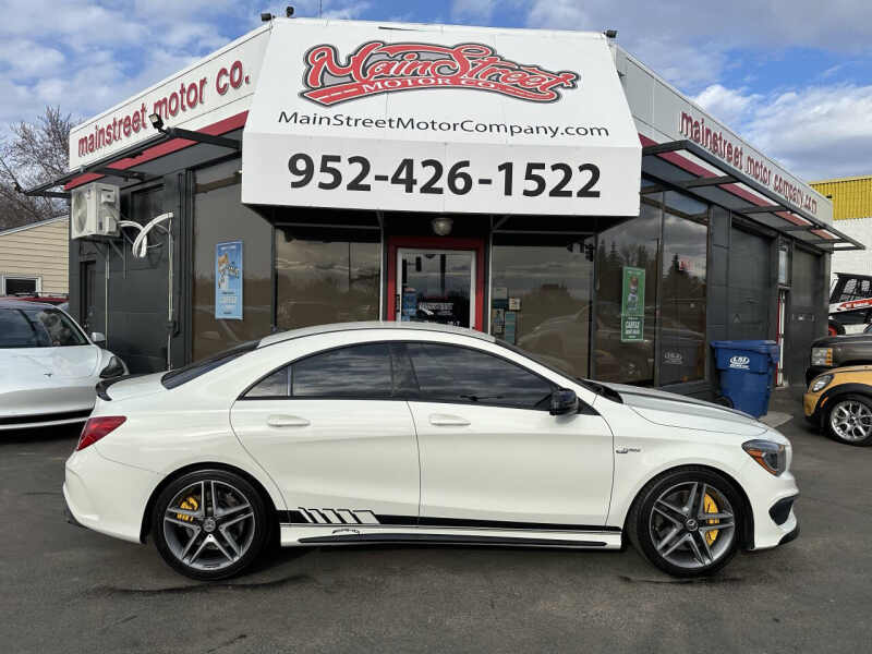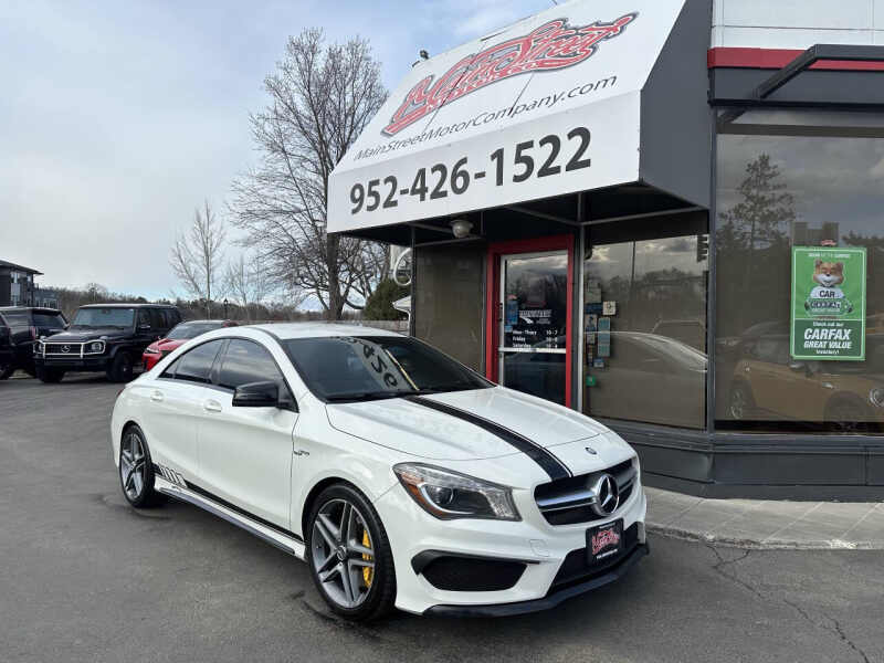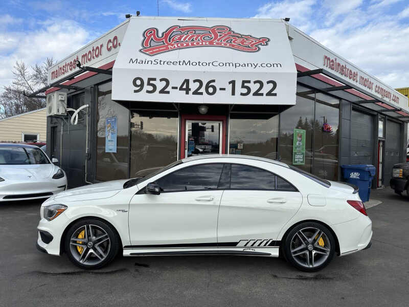 This 2014 Mercedes CLA45 AMG is a high-performance luxury sedan that combines power and style. Equipped with a 2.0L I4 turbo engine, it delivers an impressive 355 horsepower and 332 lb-ft of torque, providing an exhilarating driving experience. The 0-60 mph time is just 4.1 seconds, making it one of the quickest compact sedans in its class. With all-wheel drive and an automatic transmission, it offers exceptional handling and performance in various driving conditions. The car has 110k miles, a clean title, and no accident history, and has been well-maintained. It features keyless entry, leather seats, an entertainment screen, Bluetooth connectivity, paddle shifters, and heated seats for added comfort. Additional features include cruise control, traction control, and a Carfax report for your peace of mind. Easy financing options are available, trade-ins are welcome, and warranties are offered. Nationwide shipping is also available. For more information or to schedule a test drive, visit MainStreet Motor Co. at 2021 Mainstreet, Hopkins, MN 55343.