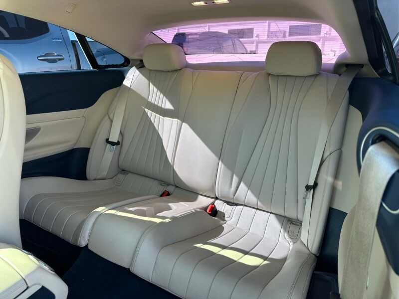 designo Diamond White Metallic / Macchiato Beige/Yacht Blue Leather 2D Coupe RWD 9-Speed Automatic 3.0L V6 BiTurbo 4-Way Lumbar Support, 4-Wheel Disc Brakes, 8 Speakers, ABS brakes, Air Conditioning, Alloy wheels, AM/FM radio, Anti-whiplash front head restraints, Apple CarPlay, Apple CarPlay/Android Auto, Auto tilt-away steering wheel, Auto-dimming door mirrors, Auto-dimming Rear-View mirror, Automatic temperature control, Blind Spot Assist, Brake assist, Bumpers body-color, Delay-off headlights, designo Black / Titanium, designo Black/Titanium Grey Pearl Leather Package, Driver door bin, Driver vanity mirror, Dual front impact airbags, Dual front side impact airbags, DVD-Audio, Electronic Stability Control, Electronic Trunk Closer, Emergency communication system mbrace2, Exterior Parking Camera Rear, Four wheel independent suspension, Front anti-roll bar, Front Bucket Seats, Front Center Armrest, Front dual zone A/C, Front reading lights, Fully automatic headlights, Garage door transmitter Homelink, Genuine wood dashboard insert, Genuine wood door panel insert, HANDS-FREE ACCESS, HD Radio w/SIRIUS Satellite & Real-Time Traffic, Head restraints memory, Heated door mirrors, Heated front seats, Illuminated entry, Inductive Wireless Charging w/NFC Pairing, KEYLESS GO, Knee airbag, Leather Shift Knob, Leather Upholstery, Low tire pressure warning, Memory seat, Navigation system COMAND, Occupant sensing airbag, Outside temperature display, Overhead airbag, Overhead console, Panic alarm, Parking Pilot w/Advanced Parking Assist, Passenger door bin, Passenger vanity mirror, Power adjustable front head restraints, Power door mirrors, Power driver seat, Power Front Seats w/Memory, Power moonroof Panorama, Power passenger seat, Power Passenger Seat w/Memory, Power steering, Power windows, Premium 1 Package, Premium audio system COMAND, Radio data system, Radio COMAND Navigation, Rain sensing wipers, Rear anti-roll bar, Rear window defroster, Remote keyless entry, Security system, SiriusXM Satellite Radio, Smartphone Integration, Speed control, Speed-sensing steering, Split folding rear seat, Steering wheel memory, Steering wheel mounted audio controls, Tachometer, Telescoping steering wheel, Tilt steering wheel, Traction control, Trip computer, Turn signal indicator mirrors, Variably intermittent wipers, Weather band radio, Wheels 18 Twin 5-Spoke.