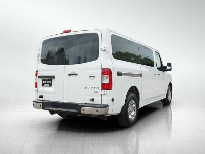 If you're looking for a powerful and spacious passenger van ready to handle big groups with ease, this 2021 Nissan NV3500 HD SL Passenger Van is available now at Walser Nissan Burnsville, located on the south side of Minneapolis and St. Paul and just over an hour north of both Rochester and Mankato. Powered by a robust 5.6-liter V8 engine generating 375 horsepower and 387 lb-ft of torque, this rear-wheel drive NV3500 SL is paired with a 7-speed automatic transmission for smooth and responsive performance. The SL trim delivers premium features including beige leather-appointed seats, heated front seats, and an 8-way power-adjustable driver's seat with manual lumbar support for long-haul comfort. The cabin is built to accommodate up to 12 passengers with removable split seating, a multi-functional lockable center console, and a driver's under-seat storage tray for added convenience. Technology is well represented with a 7-inch color touchscreen, Nissan Navigation System, Bluetooth hands-free phone system, and Hands-free Text Messaging Assistant. Safety features include a 4-wheel anti-lock braking system, electronic brake force distribution, and brake assist. On the exterior, the SL trim is distinguished by a chrome grille, front and rear bumpers, outside mirrors, and door handles, along with multi-reflector halogen headlights featuring integrated side turn signals and privacy glass for rear passengers. According to the CARFAX, this NV3500 shows no accidents or damage reported and has a consistent service history. Recent maintenance includes a pre-delivery inspection, oil and filter change, replacement of front and rear brake rotors, and a full professional wash and detail. Contact us today to schedule your test drive and see how this NV3500 HD SL can serve your passenger or business needs!