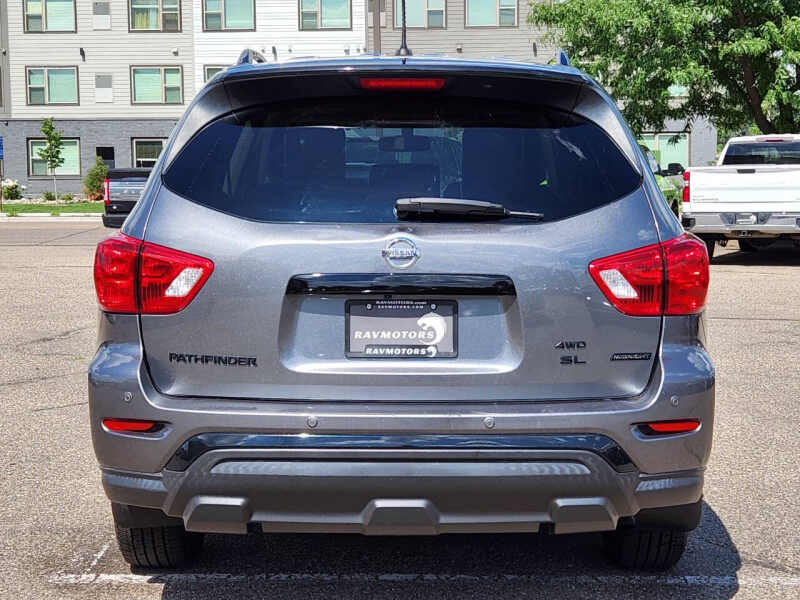 Available at our Crystal location, Conquer every journey with confidence and sophistication in this stunning 2018 Nissan Pathfinder SL 4x4 Midnight Edition. This versatile 4-door SUV, powered by a robust 3.5L V6 engine, delivers an impressive 26 MPG on the highway, making it as efficient as it is capable. The highly sought-after Midnight Edition package elevates the Pathfinder's already bold design with a suite of blacked-out accents, including unique 20-inch black alloy wheels, black mirror caps, black roof rails, and a black spoiler, ensuring you'll turn heads wherever you go. Step inside the spacious and refined cabin, where premium leather-appointed seating and a host of advanced features await. The SL trim offers an exceptional level of comfort and convenience, with amenities like heated front seats, a panoramic moonroof, a NissanConnect infotainment system with navigation, and a Bose premium audio system. With intelligent 4x4 capability, this Pathfinder is ready to tackle diverse road conditions, providing enhanced traction and control when you need it most. Whether you're navigating city streets, embarking on a family road trip, or venturing off the beaten path, the 2018 Nissan Pathfinder SL 4x4 Midnight Edition offers the perfect blend of performance, style, and practicality. Come on down to RavMotors of Crystal to test-drive our cars! We'll be happy to help you find the right car at the right price. Call for vehicle availability at 763-401-4242 or email us at ravmotorsofcrystalgmail.com. Make sure to check out our inventory at www.ravmotors.com We stand behind all of our cars. We are open from 1000 AM - 700 PM on Monday-Thursday and 1000 AM - 600 PM on Friday-Saturday.