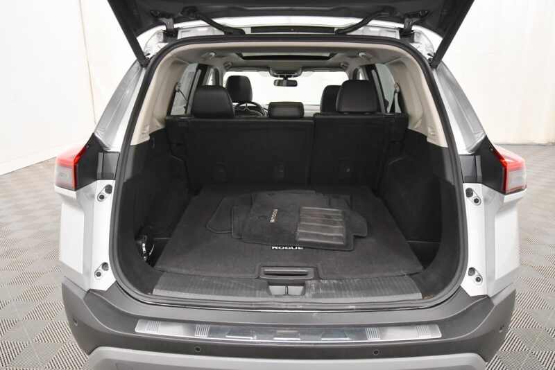 Nissan Rogue SV 1.5L I3 Turbocharged DOHC 12V LEV3-ULEV50 201hp AWD, 18 Aluminum Alloy Wheels, 6 Speakers, Emergency communication system NissanConnect Services, Fully automatic headlights, Heated Driver & Front Passenger Seats, Heated Leather Wrapped Steering Wheel, Leatherette Door Trim Inserts w/Stitch, NissanConnect featuring Apple CarPlay and Android Auto, Power driver seat, Power Liftgate, Power Panoramic Moonroof, PRIMATEX Leatherette Seat Trim, Rear Door Sunshades, Rear Parking Sensors, Rear Personal Lights, Silver Painted Roof Rails, Steering wheel mounted audio controls, SV Premium Package, Telescoping steering wheel, Tilt steering wheel, Tri zone A/C, Turn signal indicator mirrors. Odometer is 14675 miles below market average! 28/35 City/Highway MPG