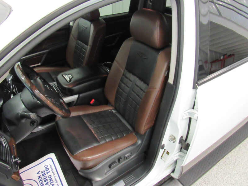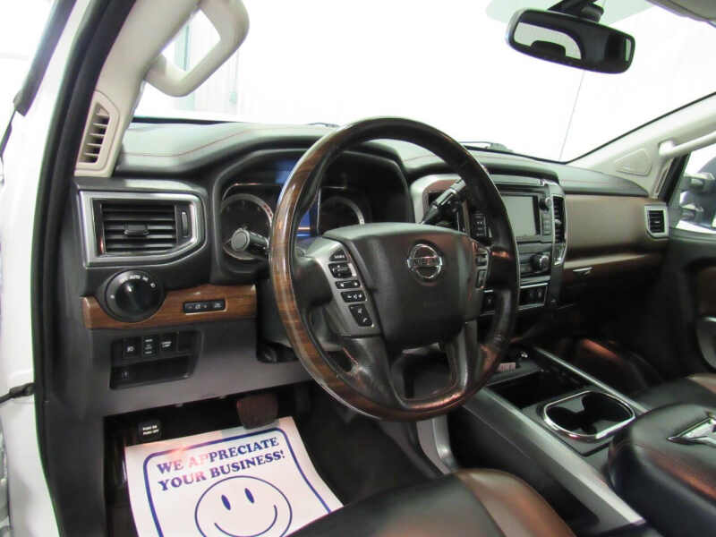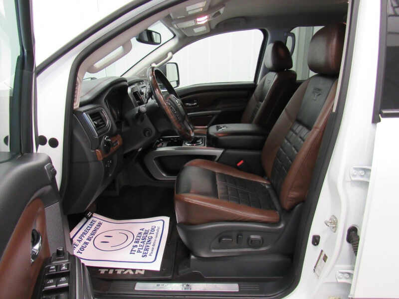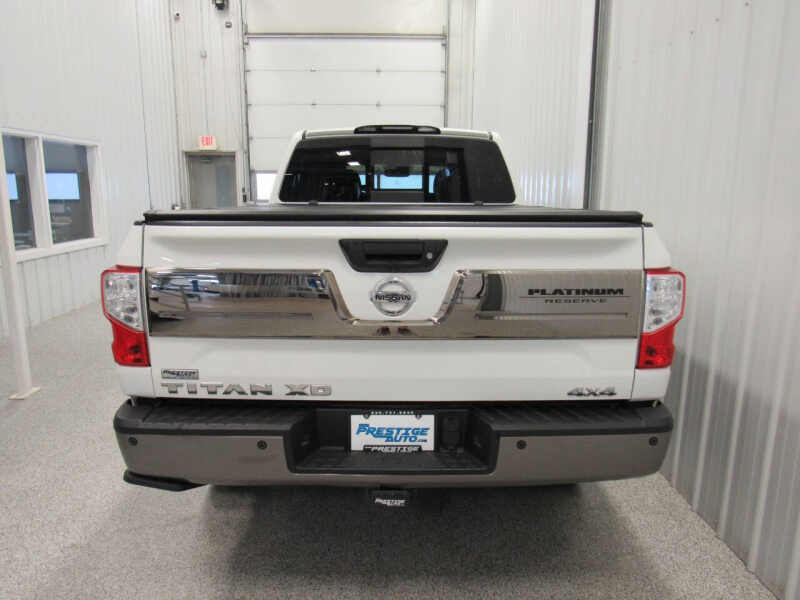 Fully loaded Platinum Reserve! 5.0L, V8 Cummins turbo diesel engine! Aisin transmission! Heated and cooled leather interior! Heated steering wheel! Navigation! Remote start! Back up camera! Gorgeous color - pearl white! 20 inch dark chrome wheels wrapped in like new LT265/60R20 Bridgestone Dueler H/T Load Range E (10 ply) tires all the way around! Original M.S.R.P. of $68,120!! Full crew cab! 4WD! Heated rear seats! Towing package! Integrated gooseneck hitch! Folding hard tonneau cover! Fender premium stereo! Nissan connect with Applet Carplay and Android Auto! Bluetooth with cd, usb and aux ports! Full length chrome Titan side steps! Spray in bedliner! LED bed lighting! Power sliding rear window! Front and rear park assist sensors! Power windows, locks, seats and mirrors! Traction control! Keyless entry! Steering wheel controls! Fog lights! All weather Titan Platinum Reserve floor liners! Side airbags! Privacy glass! Local trade! This one has it ALL! For work or for play, drive me home today! Check out the pictures! Our inventory changes daily so please call ahead to make sure this vehicle is still available and to set up an appointment. We would love to hear from you! Make sure you take advantage of our financing options. There are additional photos and information available on our website, www.prestigeauto.com. All our vehicles have been through a full safety and mechanical inspection. We also welcome trade ins. Prestige Auto Sales is celebrating over 35 years of business! Thank you!
