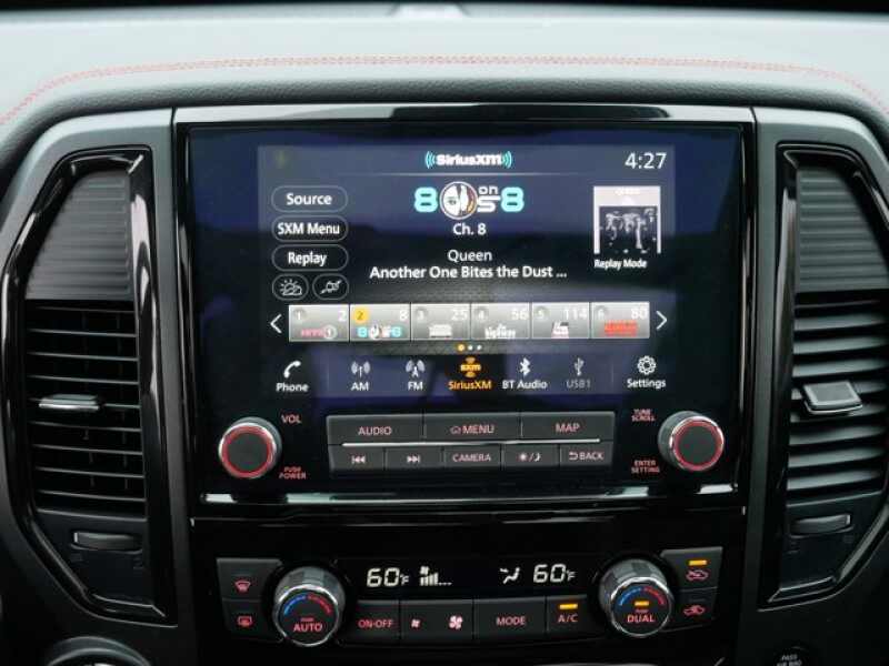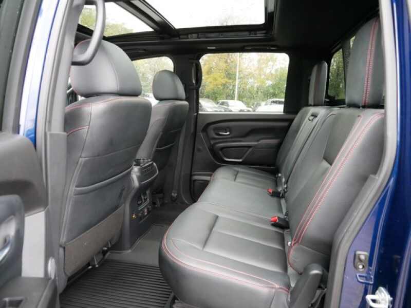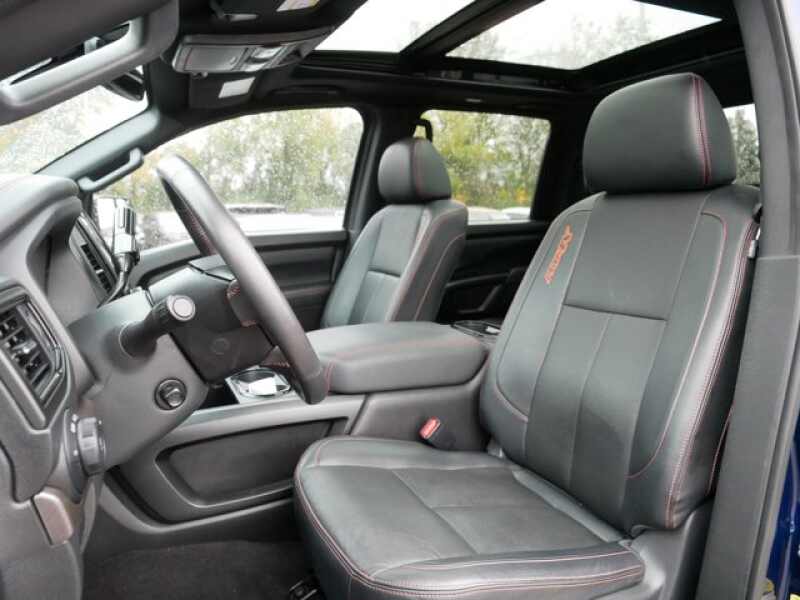 PRO-4X CONVENIENCE PACKAGE Proximity Activation, LED signature headlamps and cargo lamp, Trailer Light Check Function On Key Fob, 4-Way Power Assist Seat, Memory Driver Seat w/Auto Entry/Exit Feature, Heated Driver & Passenger Seat, Heated Rear Seats, Remote Engine Start on Key Fob, Side Turn Signal Lamps on Mirror Housing, Heated Tilt/Telescoping Steering Wheel, memory, Driver Power Folding Auto Dimming Outside Mirrors, memory and reverse auto tilt, Puddle Lamps, Intelligent Around View Monitor (I-AVM), Moving Object Detection (MOD), PRO-4X UTILITY PACKAGE 120V Outlet in Bed, Utilitrack System w/2 Tie-Down Cleats, LED Under Rail Bed Lighting, LED Tailgate Area Illumination, Front & Rear Parking Sensors, PRO-4X MOONROOF PACKAGE Dual Panel Panoramic Moonroof w/Tilt & Slide, 1-touch open/close, Driver & Passenger Ventilated Front Seats, PRO-4X RUGGED STEP BOARDS, OFF ROAD PROTECTION PACKAGE crew cab interior door scuff protection, off-road adventure kit, adventure medic kit and Pro-4X high-wall floor liners.