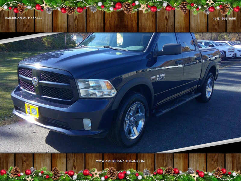 FREE $100 AMAZON GIFT CARD WITH QUALIFYING PURCHASE!!! This clean low millage RAM is ready for all your needs. With a full 6 passenger seating crew cab you get tons of room inside, tow package, 5.7L Hemi V-8, shift on the fly 4X4, 20 wheels with nice tires, backup camera, USB and AUX inputs, factory dual exhaust, roll up cover, and so much more. We have great financing with low monthly payments. Call us now American Auto Sales 651-464-3600. WE NEED YOUR TRADES!!! Nosotros hablamos espaol