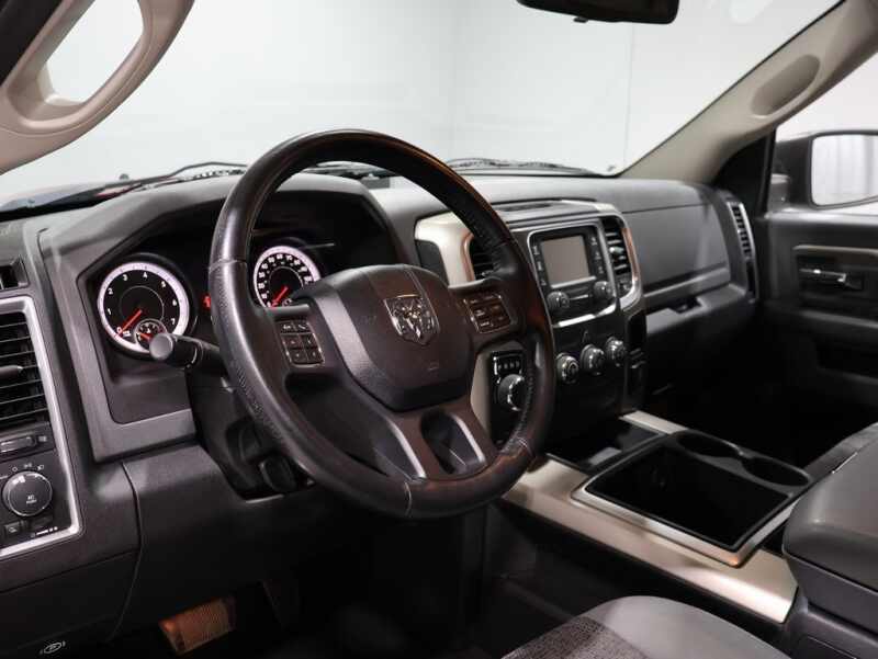 This Ram 1500 is well equipped and includes these key features and benefits, Backup Camera, Automatic Headlights, Bluetooth Handsfree, AWD / 4x4 / Four Wheel, 20 x 8 Chrome Clad Aluminum Wheels, 3.55 Rear Axle Ratio, Bighorn Badge, Bright/Bright Billets Grille, Class IV Receiver Hitch, Electric Shift-On-Demand Transfer Case, Fog Lamps, Leather Wrapped Steering Wheel, ParkSense Front/Rear Park Assist System, ParkView Rear Back-Up Camera, Power Black Trailer Tow Mirrors, Premium Cloth 40/20/40 Bench Seat, Quick Order Package 22Z Big Horn, Rear Camera & Park Assist Group, Remote Start & Security Group, Remote Start System, Security Alarm, Steering Wheel Mounted Audio Controls. Odometer is 7234 miles below market average!