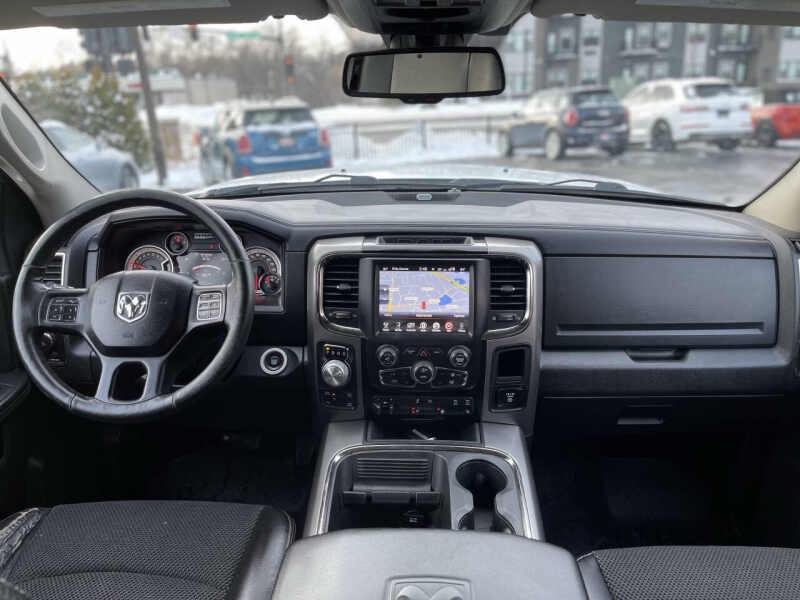 This 2017 Ram 1500 Sport 4x4 4?door Crew Cab 5.5?ft SB Pickup is a well-maintained, two-owner truck with a clean title, finished in White with a sleek black leather interior. With 117,180 miles, it is powered by a robust HEMI 5.7L V8 engine paired with an 8-speed automatic transmission and four-wheel drive, capable of towing up to 10,600 lbs when properly equipped. The cabin seats five and offers heated leather seats, a heated steering wheel, heated mirrors, power-adjustable front seats, and dual-zone automatic climate control. Technology and safety are thoughtfully integrated, including a rearview backup camera, remote keyless entry, electronic stability and traction control, hill-start and hill-descent assist, and four-wheel disc brakes with ABS and brake assist. The Sport trim features body-color grille and bumpers, Sport-specific styling accents, and a protective bed liner. Located at 2021 Mainstreet, Hopkins, MN, this Ram 1500 comes with trade-in options, available warranties, and nationwide shipping. Call 952-426-1522 to schedule a viewing today.