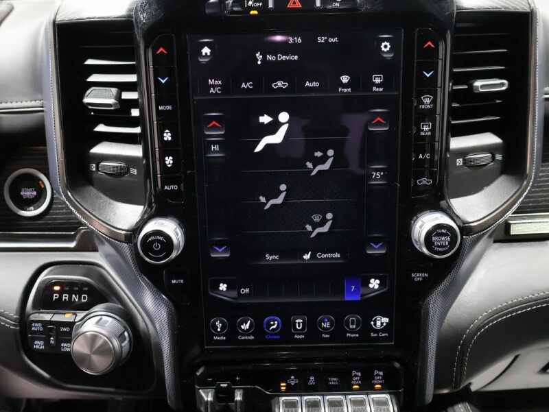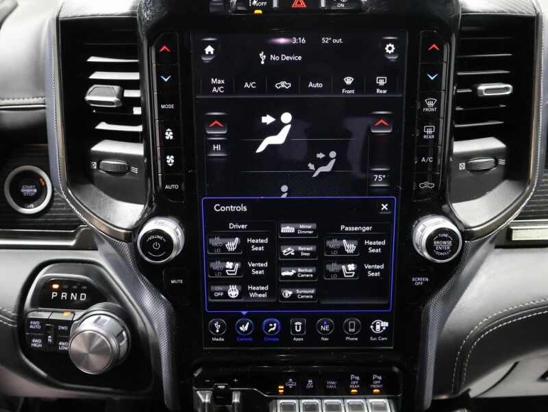 This Ram 1500 is well equipped and includes these key features and benefits, Heated and Cooled Seats, Touchscreen Controls, Backup Camera, Automatic Headlights, Bluetooth Handsfree, AWD / 4x4 / Four Wheel, Adaptive Cruise Control w/Stop & Go, Advanced Brake Assist, Body Color Bumper Group, Body Color Front Bumper, Body Color Rear Bumper w/Step Pads, Full Speed Forward Collision Warning Plus, Fully automatic headlights, GPS Navigation, harman/kardon 19 Speaker Premium Sound, Heated front seats, Lane Keep Assist, Limited Level 1 Equipment Group, Navigation System, Parallel & Perp Park Assist w/Stop, Power windows, Quick Order Package 25M Limited, Steering wheel mounted audio controls, Ventilated front seats, Ventilated Rear Seats.