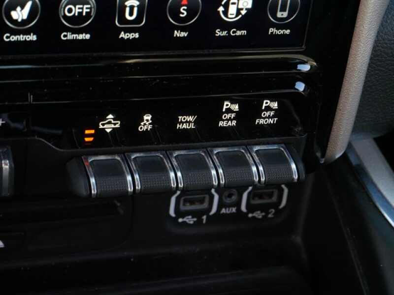 LARAMIE LEVEL 2 EQUIPMENT GROUP Blind Spot & Cross Path Detection, Rain Sensitive Windshield Wipers, ParkSense Front/Rear Park Assist w/Stop, Wireless Charging Pad, Radio Uconnect 4C Nav w/8.4 Display, SiriusXM Traffic Plus, Disassociated Touchscreen Display, HD Radio, For Details, Visit DriveUconnect.com, 1-Yr SiriusXM Guardian Trial, GPS Navigation, SiriusXM Travel Link, No Satellite Coverage w/HI/AK/PR/VI/GU, Rear 60/40 Folding Split Recline Seat, Remote Tailgate Release, harman/kardon 19 Speaker Premium Sound, Rear Underseat Compartment Storage, Auto High Beam Headlamp Control, Heated Second Row Seats, Tailgate Ajar Warning Lamp, Foam Bottle Insert (Door Trim Panel), Single Disc Remote CD Player, SPORT APPEARANCE PACKAGE Tires 275/55R20 OWL All Season, Black Interior Accents, Power Heated Fold-Away Mirrors, Sport Performance Hood, Body Color Front Bumper, Body Color Door Handles, Body Color Rear Bumper w/Step Pads, Wheels 20 x 9 Premium Painted w/Inserts, Grille B/Color Outline 3 Texture 4, 4-CORNER AIR SUSPENSION, ADVANCED SAFETY GROUP Adaptive Cruise Control w/Stop & Go, Advanced Brake Assist, Auto High Beam Headlamp Control, Parallel & Perp Park Assist w/Stop, Full Speed Forward Collision Warning Plus, Lane Keep Assist, DUAL-PANE PANORAMIC SUNROOF LED Dome/Reading Lamp, Dome Dual LED Reading Lamp, ENGINE 5.7L V8 HEMI MDS VVT Active Noise Control System, Heavy Duty Engine Cooling, GVWR 7,100 lbs, Dual Rear Exhaust w/Bright Tips, Hemi Badge, 220 Amp Alternator, POWER RUNNING BOARDS, ANTI-SPIN DIFFERENTIAL REAR AXLE, TRAILER BRAKE CONTROL, TRANSMISSION 8-SPEED AUTOMATIC (8HP75).