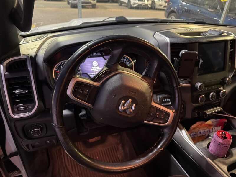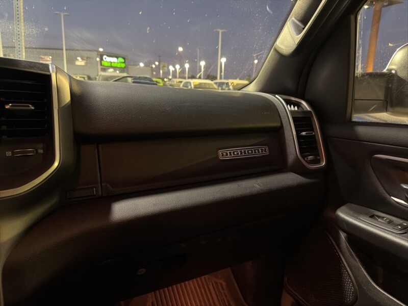 This Ram 1500 is well equipped and includes these key features and benefits, Heated Seats, Touchscreen Controls, Backup Camera, Automatic Headlights, Bluetooth Handsfree, One Owner, AWD / 4x4 / Four Wheel, 115V Auxiliary Power Outlet, 115V Auxiliary Rear Power Outlet, 2 USB Full Function/Charge Only Media Hub, 2nd Row In Floor Storage Bins, 400W Inverter, Air Conditioning ATC w/Dual Zone Control, Auto-Dimming Rear-View Mirror, Big Horn Badge, Big Horn IP Badge, Big Horn Level 2 Equipment Group, Black Interior Accents, Black Premium Power Mirrors, Body Color Door Handles, Body Color Front Bumper, Body Color Premium Power Mirrors, Body Color Rear Bumper w/Step Pads, Class IV Receiver Hitch, Dampened Tailgate, Deluxe Cloth Bucket Seats, Foam Bottle Insert (Door Trim Panel), Glove Box Lamp, Grille Surround 1 Body Color Texture 2 Black, Heated Front Seats, Heated Steering Wheel, ParkSense Front/Rear Park Assist w/Stop, Power 4-Way Driver Lumbar Adjust, Power 8-Way Driver Seat, Power Adjustable Pedals, Quick Order Package 27Z Big Horn, Radio Uconnect 4 w/8.4 Display, Rear Dome w/On/Off Switch Lamp, Rear Power Sliding Window, Rear Window Defroster, Security Alarm, SiriusXM Satellite Radio, Sport Appearance Package, Sport Decal, Sun Visors w/Illuminated Vanity Mirrors, Universal Garage Door Opener. Odometer is 6498 miles below market average!