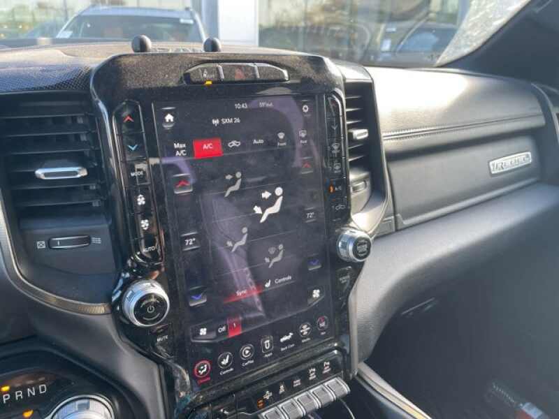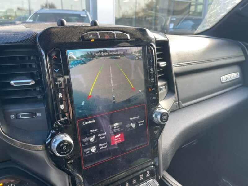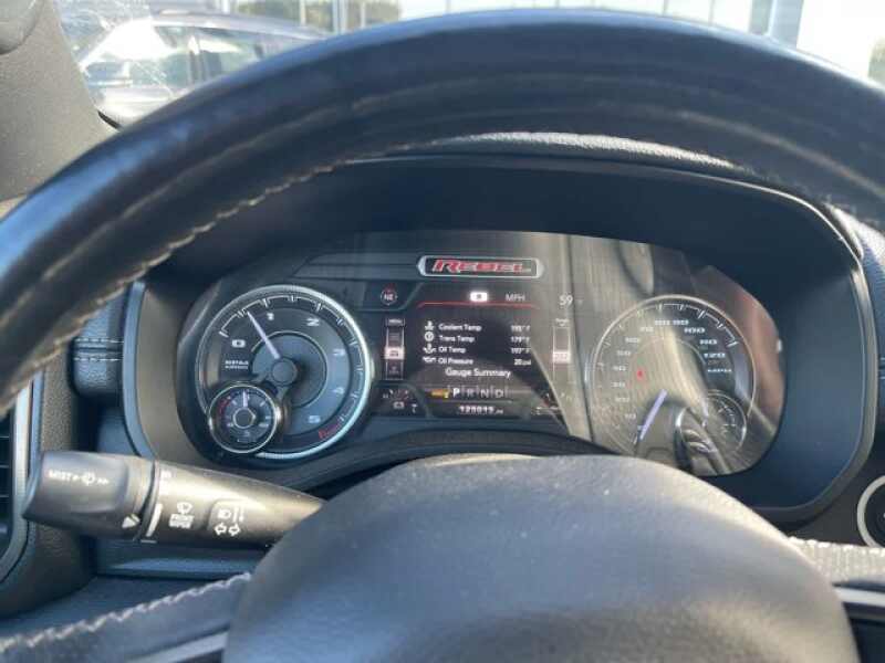 ENGINE 3.0L V6 TURBO DIESEL GEN 3 Lower Active Grille Shutters, 800 Amp Maintenance Free Battery, EcoDiesel Badge, Heavy Duty Engine Cooling, 3.8 Additional Gallons of Diesel, 250 Amp Alternator, Dual Exhaust w/Black Tips, GVWR 7,200 lbs, REBEL LEVEL 2 EQUIPMENT GROUP Radio Uconnect 4 w/8.4 Display, Remote Start System, Rear Window Defroster, Rain Sensitive Windshield Wipers, ParkSense Front/Rear Park Assist w/Stop, Rear View Auto Dim Mirror, Power Adjustable Pedals, Rear Dome w/On/Off Switch Lamp, 115V Auxiliary Rear Power Outlet, 2 USB Full Function/Charge Only Media Hub, Rear Underseat Compartment Storage, Remote Proximity Keyless Entry, Universal Garage Door Opener, Heated Front Seats, Heated Steering Wheel, Foam Bottle Insert (Door Trim Panel), Single Disc Remote CD Player, Security Alarm, Black Premium Power Mirrors, Sun Visors w/Illuminated Vanity Mirrors, REBEL 12 harman/kardon 19 Speaker Premium Sound, Radio Uconnect 12 w/Navigation, Google Android Auto, SiriusXM Traffic Plus, USB Host Flip, Disassociated Touchscreen Display, HD Radio, For Details, Visit DriveUconnect.com, Integrated Center Stack Radio, 1-Yr SiriusXM Guardian Trial, 12 Touchscreen Display, GPS Navigation, SiriusXM Travel Link, 4G LTE Wi-Fi Hot Spot, SiriusXM w/360L, Apple CarPlay, LED Footwell Lighting, 4-CORNER AIR SUSPENSION, DUAL-PANE PANORAMIC SUNROOF Premium Overhead Console, Dome Dual LED Reading Lamp, Overhead LED Lamps, SAFETY/CONVENIENCE GROUP Adaptive Cruise Control w/Stop & Go, Auto High Beam Headlamp Control, Full Speed Forward Collision Warning Plus, Lane Keep Assist, COMFORT/CONVENIENCE GROUP Remote Tailgate Release, Exterior Mirrors w/Memory, Heated Second Row Seats, Wireless Charging Pad, Driver Seat Memory, Power 8-Way Driver & Passenger Seats, TRI-FOLD TONNEAU COVER, BLACK TUBULAR SIDE STEPS, 33 GALLON FUEL TANK, TRANSMISSION 8-SPEED AUTOMATIC (8HP75) (DFV), BLACK, LUX LEATHER TRIMMED BUCKET SEATS Heated Front Seats, Heated Steering Wheel, Power 4-Way Passenger Lumbar Adjust, Power 8-Way Driver & Passenger Seats.