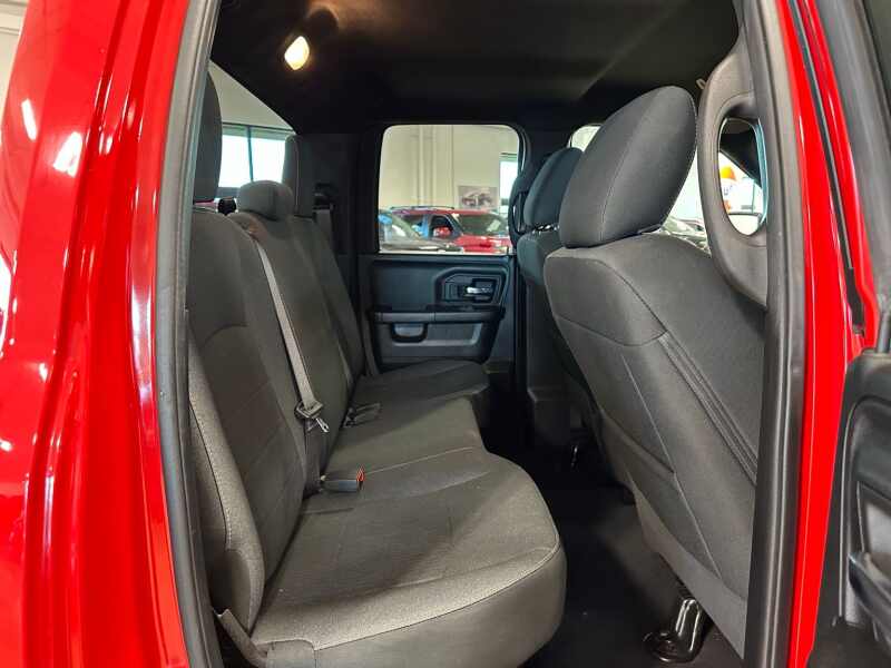 2021 Ram 1500 Classic Warlock 5.7 HEMI V8 Technology Group Flame Red Clearcoat 4D Quad Cab RWD 8-Speed Automatic HEMI 5.7L V8 Multi Displacement VVT 1-Year SiriusXM Guardian Trial, 17 x 7 Aluminum Wheels, 4-Wheel Disc Brakes, 40/20/40 Split Bench Seat, 6 Speakers, 8.4 Touchscreen Display, ABS brakes, Active Grille Shutters, Air Conditioning, Air Conditioning ATC w/Dual Zone Control, Alloy wheels, AM/FM radio SiriusXM, Anti-Spin Differential Rear Axle, Apple CarPlay, Bi-Function Halogen Projector Headlamps, Black Door Handles, Black Exterior Mirrors, Black Exterior Truck Badging, Black Grille w/RAM Lettering, Black Headlamp Filler Panel, Black Powder Coated Front Bumper, Black Powder Coated Rear Bumper, Black RAM Head Tailgate Badge, Black Wheel Flares, Brake assist, Bumpers chrome, Center Hub, Charge Only Remote USB Port, Class IV Receiver Hitch, Cloth 40/20/40 Bench Seat, Cluster 7.0 TFT Color Display, Compass, Delay-off headlights, Driver door bin, Dual front impact airbags, Dual front side impact airbags, Dual Rear Exhaust w/Bright Tips, Electronic Shift, Electronic Stability Control, Electronics Group, Exterior Mirrors w/Heating Element, Front anti-roll bar, Front Armrest w/3 Cupholders, Front Center Armrest w/Storage, Front License Plate Bracket, Front reading lights, Front wheel independent suspension, Front Wheel Well Liners, Fully automatic headlights, Google Android Auto, GPS Antenna Input, HD Radio, Heated door mirrors, Illuminated entry, Integrated Voice Command w/Bluetooth, Low tire pressure warning, Media Hub (2 USB, AUX), MOPAR Front & Rear Rubber Floor Mats, Occupant sensing airbag, Outside temperature display, Overhead airbag, Overhead console, Panic alarm, ParkSense Rear Park Assist System, ParkView Rear Back-Up Camera, Passenger door bin, Passenger vanity mirror, Power door mirrors, Power steering, Power windows, Quick Order Package 27F Warlock, Radio data system, Radio Uconnect 3 w/5 Display, Radio Uconnect 4C w/8.4 Display, Rear anti-roll bar, Rear step bumper, Remote keyless entry, Rotary Shifter-Black, Semi-Gloss Black Hub, Speed control, Sport Tail Lamps, Tachometer, Tilt steering wheel, Tip Start, Traction control, Trip computer, USB Host Flip, Voltmeter, Warlock, Warlock Interior Accents, Wheels 20 x 9 Semi-Gloss Black Aluminum.