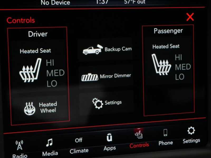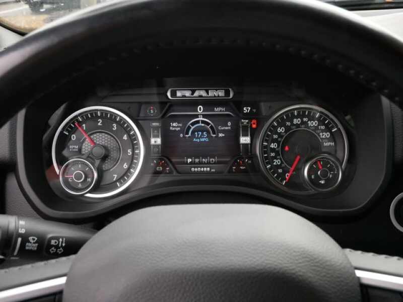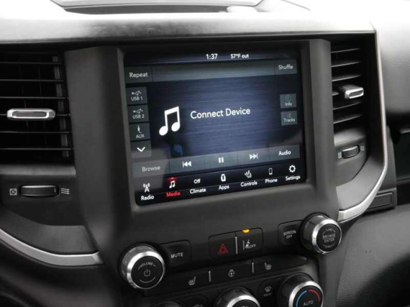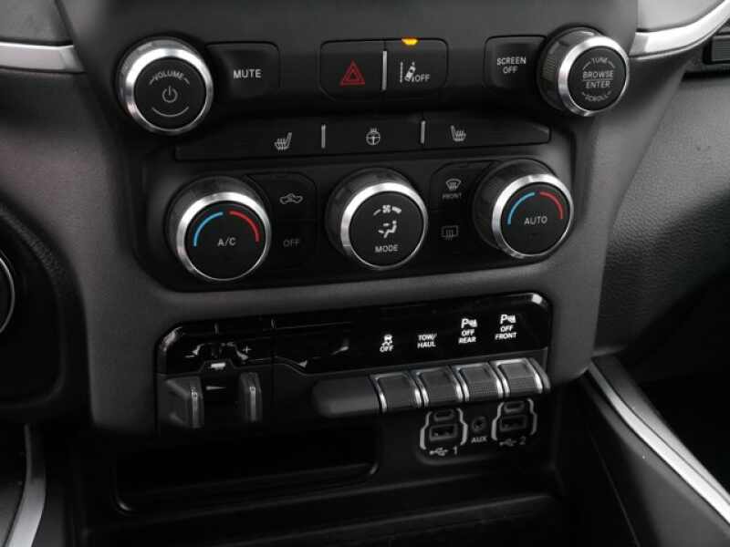 BIG HORN LEVEL 2 EQUIPMENT GROUP SiriusXM Radio Service, Rear Window Defroster, ParkSense Front/Rear Park Assist w/Stop, Rear View Auto Dim Mirror, Power Adjustable Pedals, For More Info, Call 800-643-2112, Rear Power Sliding Window, Rear Dome w/On/Off Switch Lamp, Glove Box Lamp, Power 4-Way Driver Lumbar Adjust, 115V Auxiliary Rear Power Outlet, Media Hub w/2 Charge Only USBs, Power 8-Way Driver Seat, Auto Dim Exterior Driver Mirror, Heated Front Seats, Heated Steering Wheel, Foam Bottle Insert (Door Trim Panel), Class IV Receiver Hitch, Security Alarm, Black Premium Power Mirrors, Big Horn IP Badge, Remote Start System, SiriusXM Satellite Radio, Exterior Mirrors w/Supplemental Signals, Exterior Mirrors Courtesy Lamps, Air Conditioning ATC w/Dual Zone Control, 115V Auxiliary Power, ENGINE 5.7L V8 HEMI MDS VVT Active Noise Control System, 180 Amp Alternator, Heavy Duty Engine Cooling, GVWR 7,100 lbs, Dual Rear Exhaust w/Bright Tips, HEMI Badge, LEVEL 1 SAFETY GROUP Advanced Brake Assist, Cluster 3.5 TFT Color Display, Rear View Auto Dim Mirror, Pedestrian Emergency Braking, Full Speed Forward Collision Warning Plus, Lane Keep Assist, BLACK, DELUXE CLOTH BUCKET SEATS Power 8-Way Driver Seat, Center Console Parts Module, Bucket Seats, Manual Adjust 4-Way Front Passenger Seat, Full Length Floor Console, Power 4-Way Driver Lumbar Adjust, REMOTE START SYSTEM, RADIO UCONNECT 4 W/8.4 DISPLAY.