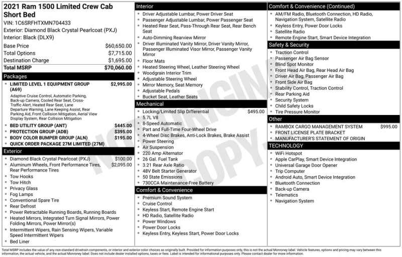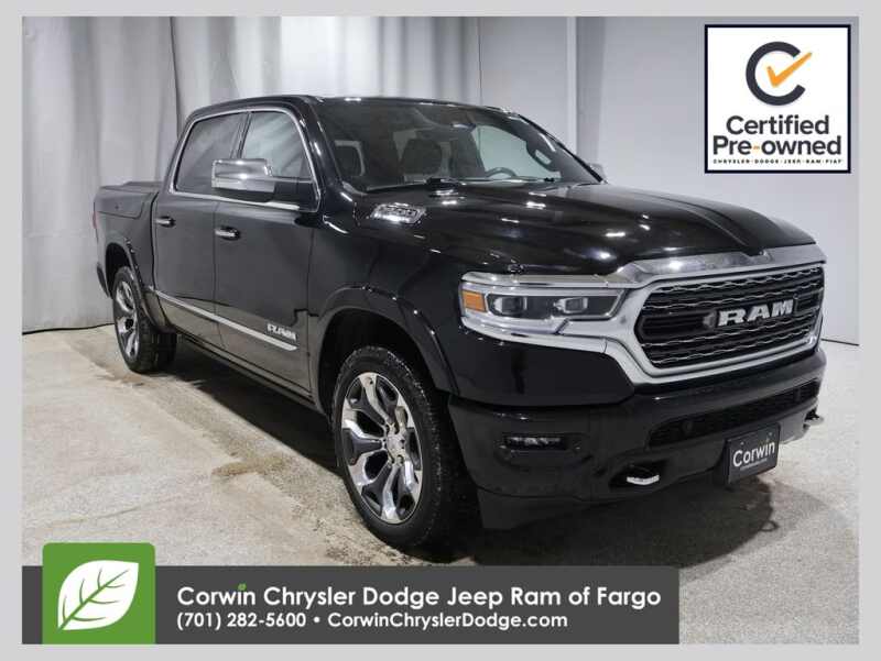 EMBRACE THE SHORTEST MONTH OF THE YEAR WITH CORWIN CHRYSLER DODGE JEEP RAM OF FARGO! WE HAVE SAVINGS ON ALL OF OUR PRE-OWNED VEHICLES AVAILABLE!!WE HAVE ONE OF THE LARGEST SELECTIONS OF INVENTORIES IN OUR AREA AT ONE SINGLE LOCATION!! Recent Arrival! Diamond Black Crystal Pearlcoat 2021 Ram 1500 Limited FACTORY CERTIFIED 4D Crew Cab 4WD HEMI 5.7L V8 Multi Displacement VVT Certified. CARFAX One-Owner. Clean CARFAX.