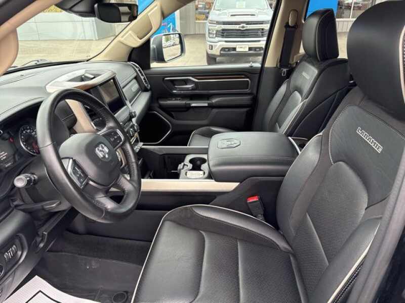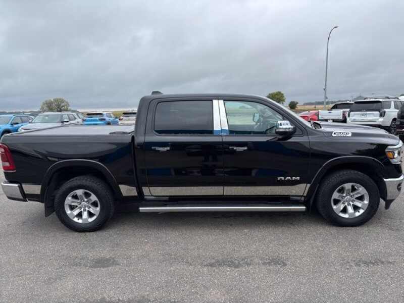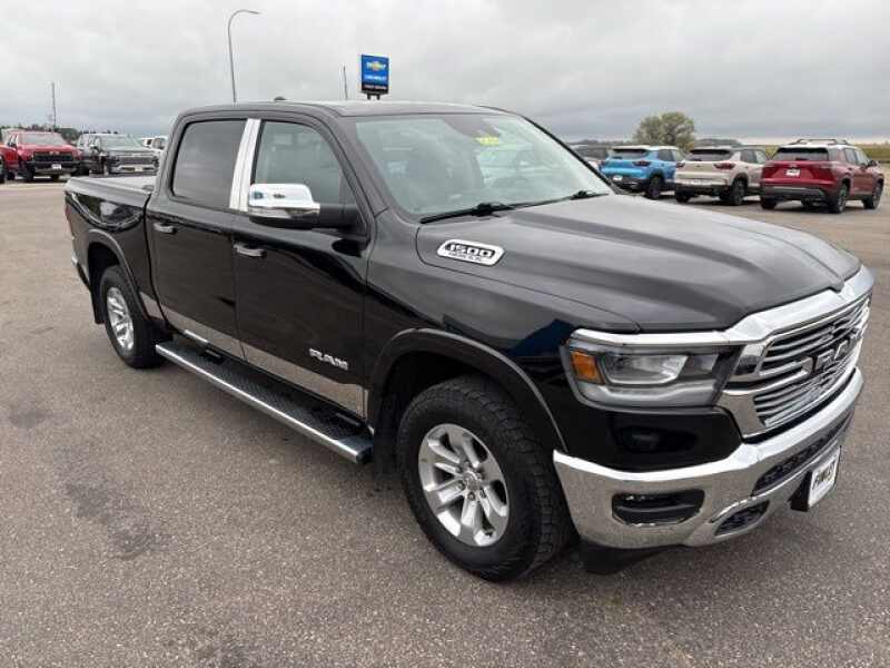 Diamond Black Crystal Pearlcoat 2021 Ram 1500 Laramie Odometer is 2890 miles below market average! Full tank of gas with vehicle purchase! All vehicles fully serviced inspected and ready to go. We are a small town dealer and we stand behind our vehicles and our customers!