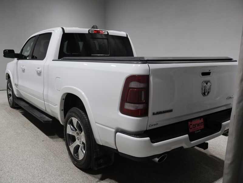 This Ram 1500 is well equipped and includes the following features and benefits, Heated and Cooled Seats, Backup Camera, Bluetooth Hands-Free, 4x4 / 4 Wheel Drive / AWD, New Tires, Auto High Beam Headlamp Control, Black Interior Accents, Body Color Door Handles, Body Color Exterior Mirrors, Body Color Front Bumper, Body Color Premium Power Mirrors, Body Color Rear Bumper w/Step Pads, Foam Bottle Insert (Door Trim Panel), Grille Surround 3 Body Color Tex 2 Black, Laramie Level A Equipment Group, ParkSense Front/Rear Park Assist w/Stop, Rain Sensitive Windshield Wipers, Rear 60/40 Folding Split Recline Seat, Remote Tailgate Release, Sport Appearance Package, Sport Decal, Sport Performance Hood, Tailgate Ajar Warning Lamp, Wheels 20 x 9 Premium Painted w/Inserts. Odometer is 13177 miles below market average!