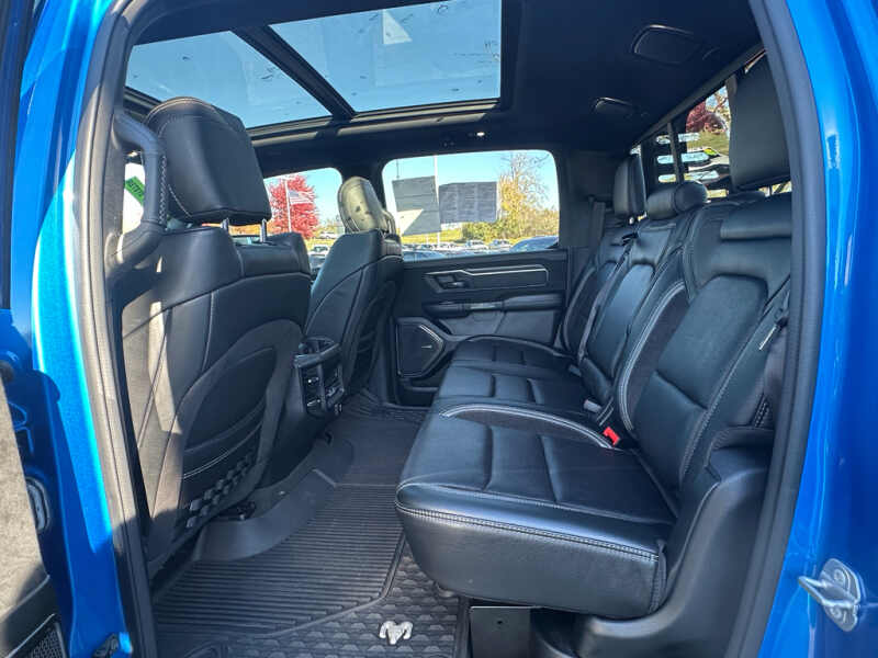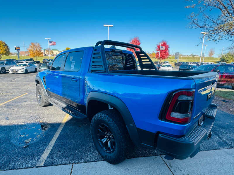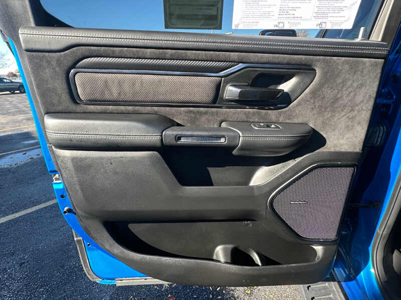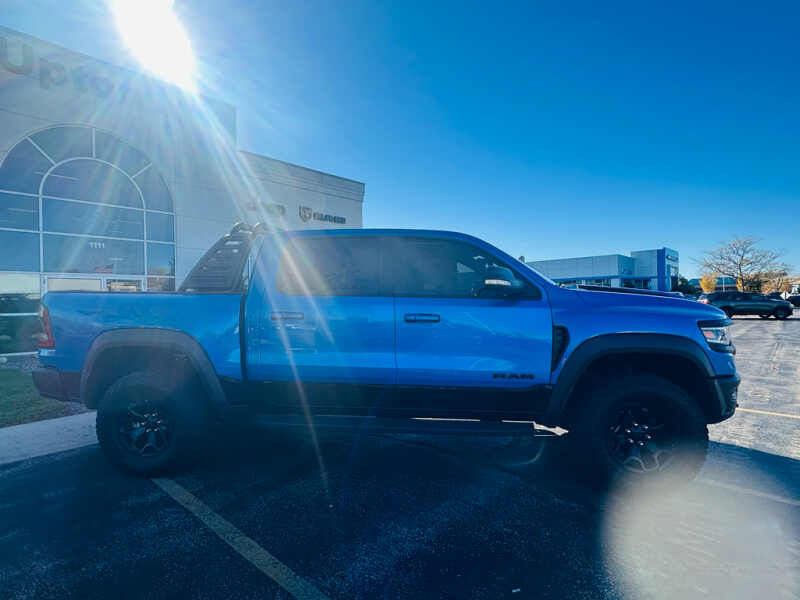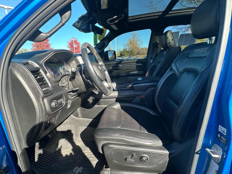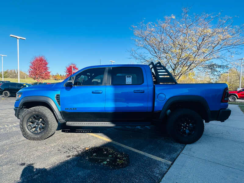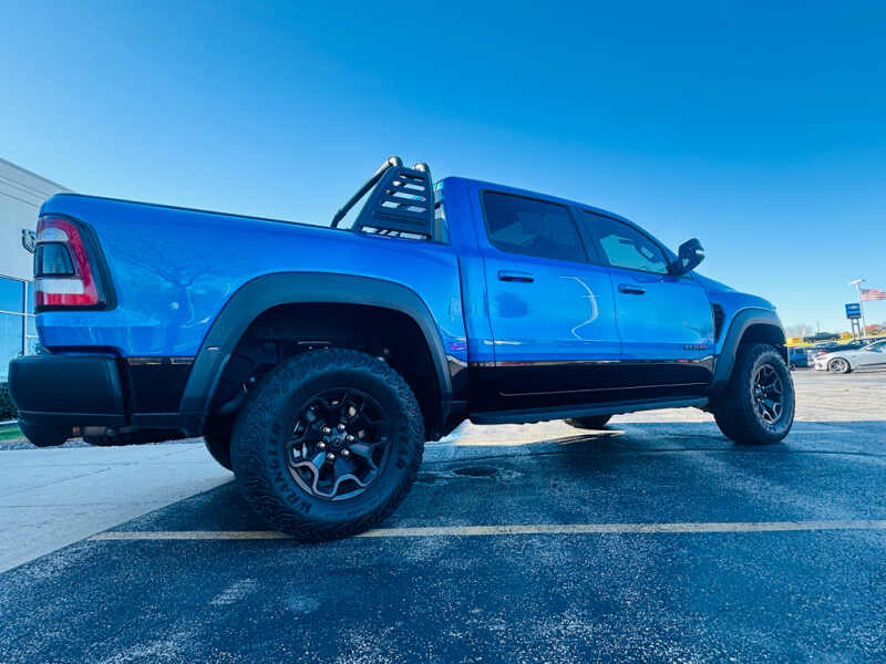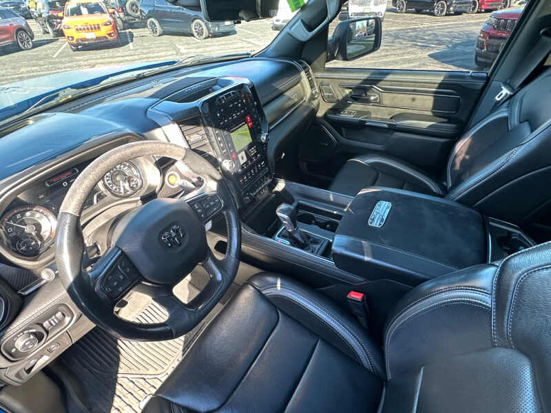 Advanced Safety Group Adaptive Cruise Control with Stop and Go Pedestrian Emergency Braking Lane Keep Assist. Technology Group Head Up Display LED CHMSL Lamp Rearview Autodim Digital Display Mirror. Bed Utility Group MOPAR Spray in Bedliner MOPAR Deployable Bed Step MOPAR 4 Adjustable Cargo Tie-Down Hooks. Quick Order Package 29Y. TRX Level 2 Equipment Group Full Length Premium Upgraded Floor Console Rear Window Defroster Surround View Camera System Blind Spot and Cross Path Detection Rain Sensitive Windshield Wipers ParkSense Front/rear Park Assist with Stop Power Adjustable Pedals with Memory Pick-Up Box Lighting Body Color Door Handles IP LED Ambient Light Pipe Rear Underseat Compartment Storage Trailer Brake Control Leather Trimmed Bucket Seats Heated Second Row Seats Heated Front Seats Heated Steering Wheel Leather/suede Flat-Bottom Steering Wheel Remote Start System Wireless Charging Pad Driver/passenger Wrapped Assist Handles Ventilated Rear Seats Rear 60/40 Folding Split Recline Seat Ventilated Front Seats Remote Tailgate Release Premium Wrapped Instrument Panel Bezel Remote Proximity Keyless Entry Universal Garage Door Opener Exterior Mirrors with Memory Luxury Front Door Trim Panel Driver Seat Memory Front Door Accent Lighting Power 8-Way Driver and Passenger Seats Radio/driver Seat/mirrors/pedals Memory Rear Door Accent Lighting Sun Visors with Illuminated Vanity Mirrors. Trailer Tow Group Trailer Light Check Trailer Brake Control Trailer Tire Pressure Monitoring System. TRX Carbon Fiber Package Leather/carbon Flat-Bottom Steering Wheel Real Carbon Fiber Interior Accents. MOPAR Rambar. Dual-Pane Panoramic Sunroof. Harman/kardon 19 Speaker Premium Sound. MOPAR Bed-Mounted Tire Carrier. MOPAR Rock Rails. MOPAR TRX Hood Graphics. Blind Spot and Cross Path Detection. Surround View Camera System. ParkSense Front/rear Park Assist with Stop. Remote Start System. Hydro Blue Pearlcoat. **Equipment listed is based on original vehicle build and subject to change. Please confirm the accuracy of the included equipment by calling the dealer prior to purchase.**