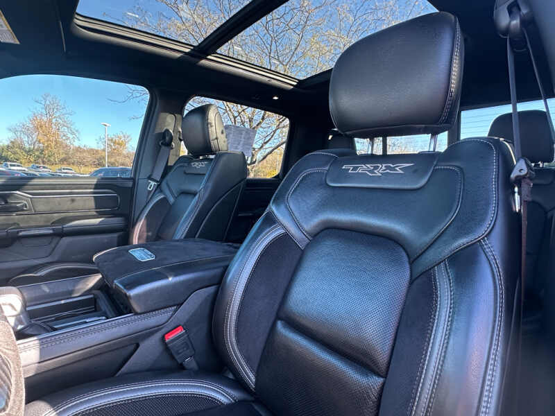 - TRX Level 2 Equipment Group Full Length Premium Upgraded Floor Console Rear Window Defroster Surround View Camera System Blind Spot and Cross Path Detection Rain Sensitive Windshield Wipers ParkSense Front/rear Park Assist with Stop Power Adjustable Pedals with Memory Pick-Up Box Lighting Body Color Door Handles IP LED Ambient Light Pipe Rear Underseat Compartment Storage Trailer Brake Control Leather Trimmed Bucket Seats Heated Second Row Seats Heated Front Seats Heated Steering Wheel Leather/suede Flat-Bottom Steering Wheel Remote Start System Wireless Charging Pad Driver/passenger Wrapped Assist Handles Ventilated Rear Seats Rear 60/40 Folding Split Recline Seat Ventilated Front Seats Remote Tailgate Release Premium Wrapped Instrument Panel Bezel Remote Proximity Keyless Entry Universal Garage Door Opener Exterior Mirrors with Memory Luxury Front Door Trim Panel Driver Seat Memory Front Door Accent Lighting Power 8-Way Driver and Passenger Seats Radio/driver Seat/mirrors/pedals Memory Rear Door Accent Lighting Sun Visors with Illuminated Vanity Mirrors