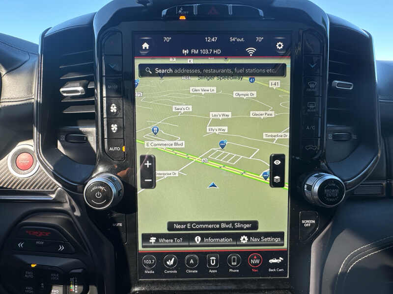 2021 Ram 1500 TRX 6.2L V8, 4WD, 35,784 Miles Slinger, WI This powerhouse 2021 Ram 1500 TRX combines brute force and modern convenience in one striking package. Powered by a supercharged 6.2L V8 gasoline engine and equipped with four-wheel drive, this TRX delivers exhilarating performance on pavement and confidence off-road. With just 35,784 miles, this example pairs robust capability with a well-maintained, low-mileage profile. Safety and driver-assist technologies include Forward Collision Warning, Lane Keep Assist, and a Back-Up Camera, helping protect occupants and making daily driving more secure. Seamless connectivity features such as Apple CarPlay and Hands-Free Bluetooth ensure effortless smartphone integration and hands-on-the-wheel convenience for calls, navigation, and media. Inside, durable materials and supportive seating provide comfort during long drives or rugged adventures. Cargo capacity and towing capability make this TRX practical for work, recreation, and weekend escapes. Exterior cues and a performance-tuned suspension emphasize its high-performance character while maintaining everyday usability. Located in Slinger, WI, this 2021 Ram 1500 TRX is competitively priced listed as the best price for comparable models in the area. If you're seeking a confidently styled, feature-rich performance pickup with modern safety and connectivity, schedule a test drive today and experience the blend of power, technology, and value this TRX offers.