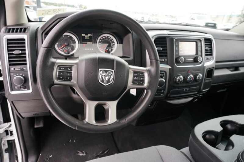 Bluetooth, Backup Camera, ONE OWNER ACCIDENT FREE CARFAX REPORT!!, KEYLESS REMOTE ENTRY!!, ALLOY WHEELS!!, BLUETOOTH!!, BACK UP CAMERA!!, HARD TO FIND LONG BOX 4X4 with a V8 HEMI!!, 17 x 7 Aluminum Wheels, 3.21 Rear Axle Ratio, 4-Wheel Disc Brakes, 40/20/40 Split Bench Seat, 6 Speakers, ABS brakes, Active Grille Shutters, Air Conditioning, Alloy wheels, AM/FM radio SiriusXM, Black Exterior Mirrors, Brake assist, Bumpers chrome, Center Hub, Charge Only Remote USB Port, Cloth 40/20/40 Bench Seat, Compass, Delay-off headlights, Driver door bin, Dual front impact airbags, Dual front side impact airbags, Electronic Shift, Electronic Stability Control, Exterior Mirrors w/Heating Element, Front anti-roll bar, Front Armrest w/3 Cupholders, Front Center Armrest w/Storage, Front reading lights, Front wheel independent suspension, Fully automatic headlights, GPS Antenna Input, Heated door mirrors, Illuminated entry, Integrated Voice Command w/Bluetooth, Low tire pressure warning, Manual Adjust Seats, Occupant sensing airbag, Outside temperature display, Overhead airbag, Overhead console, Panic alarm, ParkView Rear Back-Up Camera, Passenger door bin, Passenger vanity mirror, Power door mirrors, Power steering, Power windows, Quick Order Package 26G SLT (Fleet), Radio data system, Radio Uconnect 3 w/5 Display, Rear anti-roll bar, Rear step bumper, Remote keyless entry, Rotary Shifter-Black, Speed control, Tachometer, Tilt steering wheel, Tip Start, Traction control, Trip computer, Variably intermittent wipers, Voltmeter. Recent Arrival! New Price!