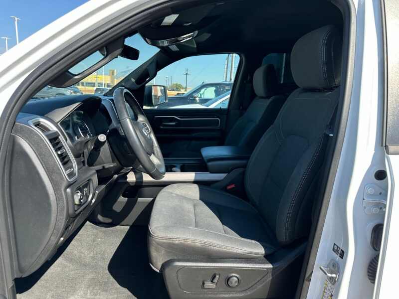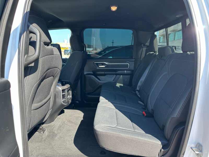 2022 Ram 1500 Big Horn/Lone Star Level 2 HEMI V8 Bright White Clearcoat 4D Crew Cab RWD 8-Speed Automatic HEMI 5.7L V8 Multi Displacement VVT 115V Auxiliary Power Outlet, 115V Auxiliary Rear Power Outlet, 2nd Row In Floor Storage Bins, 3 Rear Seat Head Restraints, 3.21 Rear Axle Ratio, 4 Way Front Headrests, 4-Wheel Disc Brakes, 400W Inverter, 48V Belt Starter Generator, 4G LTE Wi-Fi Hot Spot, 6 Speakers, 8.4 Touchscreen Display, ABS brakes, Accent Color Premium Power Mirrors, Air Conditioning, Air Conditioning ATC w/Dual Zone Control, Alloy wheels, AM/FM radio, Anti-Spin Differential Rear Axle, Apple CarPlay, Auto-Dimming Exterior Driver Mirror, Auto-Dimming Rear-View Mirror, Big Horn Level 2 Equipment Group, Black Exterior Mirrors, Black Exterior Truck Badging, Black Headlamp Bezels, Black Interior Accents, Black Painted Exterior Mirrors Caps, Black Premium Power Mirrors, Bluetooth Handsfree Phone & Audio, Body Color Front Bumper, Body Color Rear Bumper w/Step Pads, Brake assist, Bucket Seats, Bumpers chrome, Class IV Receiver Hitch, Cloth Bench Seat, Cluster 7.0 TFT Color Display, Compass, Connected Services Delete Credit, Connectivity - US/Canada, Convex Wide-Angle Mirror Insert, Delay-off headlights, Delete LED Lamp - Floor Console Bin, Deluxe Cloth Bucket Seats, Driver door bin, Dual Exhaust w/Black Tips, Dual front impact airbags, Dual front side impact airbags, Electronic Stability Control, Emergency communication system SiriusXM Guardian, Exterior Mirrors Courtesy Lamps, Exterior Mirrors w/Heating Element, Exterior Mirrors w/Supplemental Signals, For Details, Visit DriveUconnect.com, Front anti-roll bar, Front Center Armrest w/Storage, Front fog lights, Front License Plate Bracket, Front reading lights, Front Seat Back Map Pockets, Front wheel independent suspension, Full Length Floor Console, Fully automatic headlights, Global Telematics Box Module (TBM), Glove Box Lamp, Google Android Auto, GPS Antenna Input, Heated Front Seats, Heated Steering Wheel, Illuminated entry, Integrated Center Stack Radio, Integrated Voice Command w/Bluetooth, Leather steering wheel, Lone Star Badge, Low tire pressure warning, Manual Adjust 4-Way Front Passenger Seat, Media Hub w/2 Charge Only USBs, MOPAR Front & Rear Rubber Floor Mats, Night Edition, Occupant sensing airbag, Outside temperature display, Overhead airbag, Overhead console, Panic alarm, ParkSense Front/Rear Park Assist w/Stop, ParkView Rear Back-Up Camera, Passenger door bin, Passenger vanity mirror, Power 2-Way Driver Lumbar Adjust, Power 8-Way Driver Seat, Power Adjustable Pedals, Power door mirrors, Power steering, Power windows, Power-Folding Mirrors, Quick Order Package 27R Lone Star (Regional), Radio data system, Radio Uconnect 3 w/5 Display, Radio Uconnect 5 W w/8.4 Display, Rear 60/40 Folding Seat, Rear anti-roll bar, Rear Center Armrest, Rear Dome w/On/Off Switch Lamp, Rear Power Sliding Window, Rear seat center armrest, Rear step bumper, Rear Window Defroster, Remote keyless entry, Remote Start System, Security Alarm, SiriusXM Radio Service, SiriusXM Satellite Radio, Speed control, Split folding rear seat, Steering wheel mounted audio controls, Sun Visors w/Illuminated Vanity Mirrors, Tachometer, Telescoping steering wheel, Tilt steering wheel, Traction control, Trip computer, Universal Garage Door Opener, USB Host Flip, Variably intermittent wipers, Voltmeter, Wheels 20 x 9.0 Premium Paint/Polished.