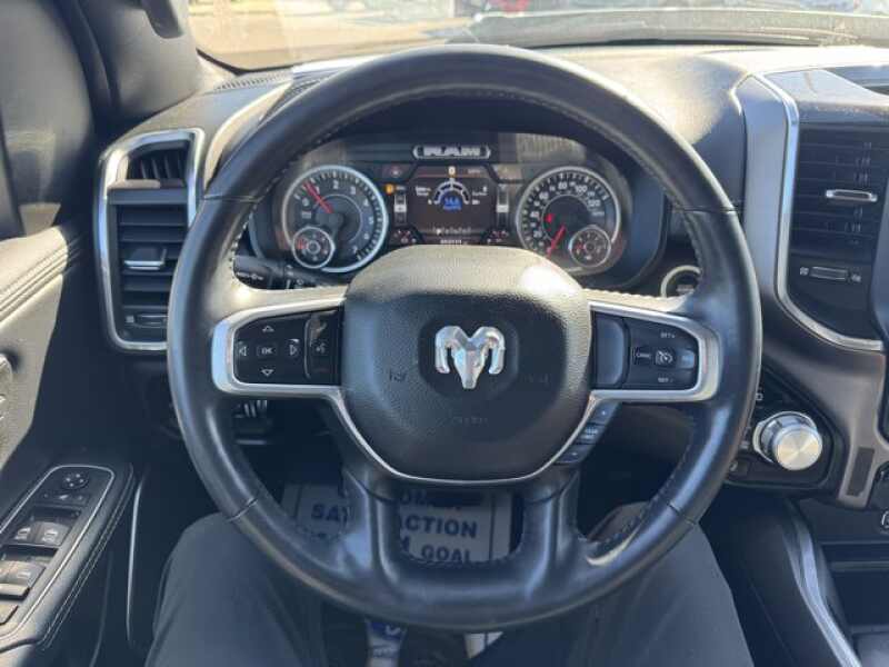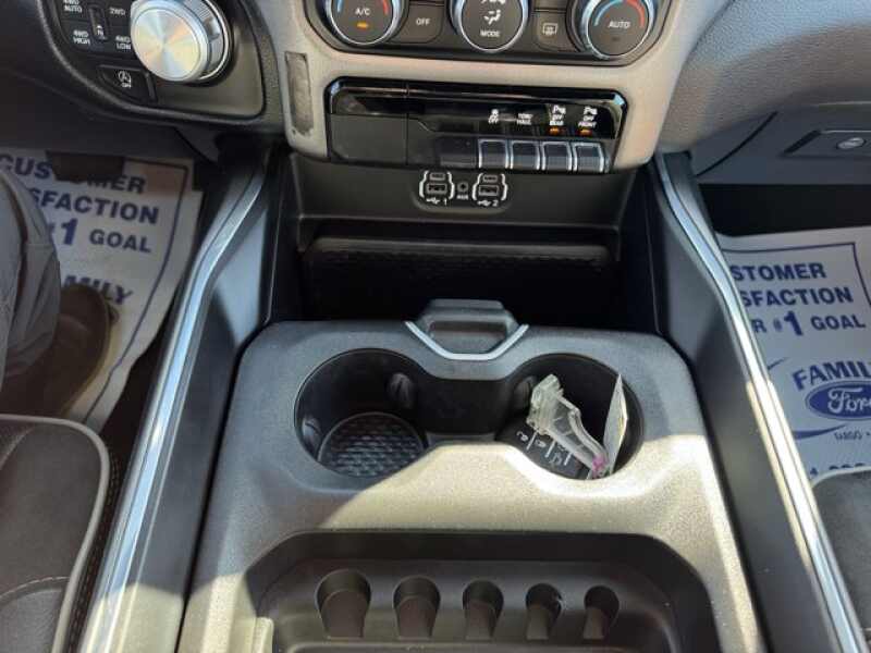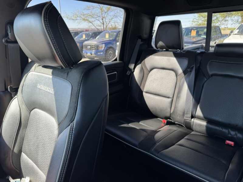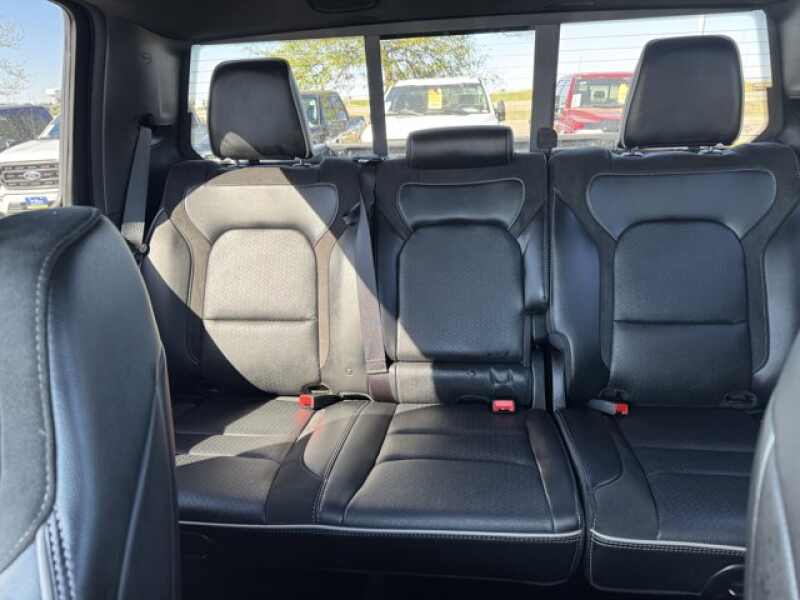 ENGINE 5.7L V8 HEMI MDS VVT ETORQUE Active Noise Control System, Heavy Duty Engine Cooling, Passive Tuned Mass Damper, GPEC 5 Engine Controller, GVWR 7,100 lbs, Dual Rear Exhaust w/Bright Tips, HEMI Badge, 23 Gallon Fuel Tank, 18 Aluminum Spare Wheel, SPORT APPEARANCE PACKAGE Tires 275/55R20 OWL All Season, Twill Film Appliques, Body Color Premium Power Mirrors, Sport Performance Hood, Sport Decal, Body Color Door Handles, Wheels 20 x 9 Premium Painted w/Inserts, Body Color Exterior Mirrors, Black Interior Accents, Body Color Front Bumper, Body Color Rear Bumper w/Step Pads, Grille Surround 3 Body Color Tex 2 Black, All Plant-Installed Decals, LARAMIE LEVEL A EQUIPMENT GROUP Remote Tailgate Release, Auto High Beam Headlamp Control, Rain Sensitive Windshield Wipers, ParkSense Front/Rear Park Assist w/Stop, Foam Bottle Insert (Door Trim Panel), Rear 60/40 Folding Split Recline Seat, BLACK, LEATHER TRIMMED BUCKET SEATS Bucket Seats, Full Length Upgraded Floor Console, TRANSMISSION 8-SPEED AUTOMATIC (8HP75).