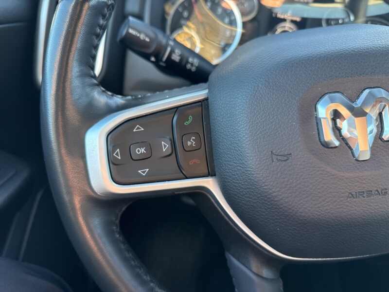 This Ram 1500 is well equipped and includes these key features and benefits, Touchscreen Controls, Backup Camera, Automatic Headlights, Bluetooth Handsfree, AWD / 4x4 / Four Wheel, 2nd Row In Floor Storage Bins, 4G LTE Wi-Fi Hot Spot, 8.4 Touchscreen Display, Apple CarPlay, Auto-Dimming Exterior Driver Mirror, Auto-Dimming Rear-View Mirror, Big Horn Badge, Big Horn Level 1 Equipment Group, Black Exterior Mirrors, Black Interior Accents, Black Premium Power Mirrors, Bluetooth Handsfree Phone & Audio, Body Color Door Handles, Body Color Exterior Mirrors, Body Color Front Bumper, Body Color Premium Power Mirrors, Body Color Rear Bumper w/Step Pads, Class IV Receiver Hitch, Connectivity - US/Canada, Convex Wide-Angle Exterior Mirror Insert, Deluxe Cloth Bucket Seats, Electric Shift-On-Demand Transfer Case, Exterior Mirrors Courtesy Lamps, Exterior Mirrors w/Heating Element, Exterior Mirrors w/Supplemental Signals, For Details, Visit DriveUconnect.com, For More Info, Call 800-643-2112, Front Fog Lamps, Glove Box Lamp, Google Android Auto, GPS Antenna Input, Heated Front Seats, Heated Steering Wheel, Integrated Center Stack Radio, ParkView Rear Back-Up Camera, Passenger Sun Visor w/Illuminated Mirror, Power-Folding Mirrors, Quick Order Package 23Z Big Horn, Radio Uconnect 5 W w/8.4 Display, RAM Grille Badge - Chrome, Rear Dome w/On/Off Switch Lamp, Rear Power Sliding Window, Rear Window Defroster, SiriusXM Satellite Radio, Sport Appearance Package, Sport Decal, USB Host Flip. Odometer is 21113 miles below market average!