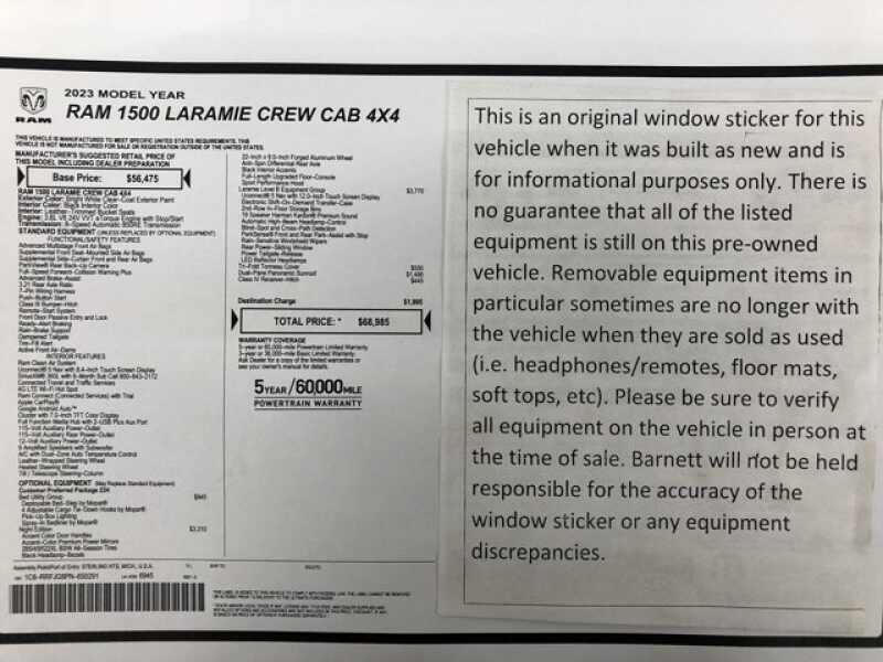 Listed selling price includes a $1000 Barnett Trade Bonus. Trade-in vehicles no more than 10 years old and 100K miles or less with a clean title automatically qualify. Trade-in vehicles outside these parameters need to be discussed and reviewed in person with the dealership to determine qualification.