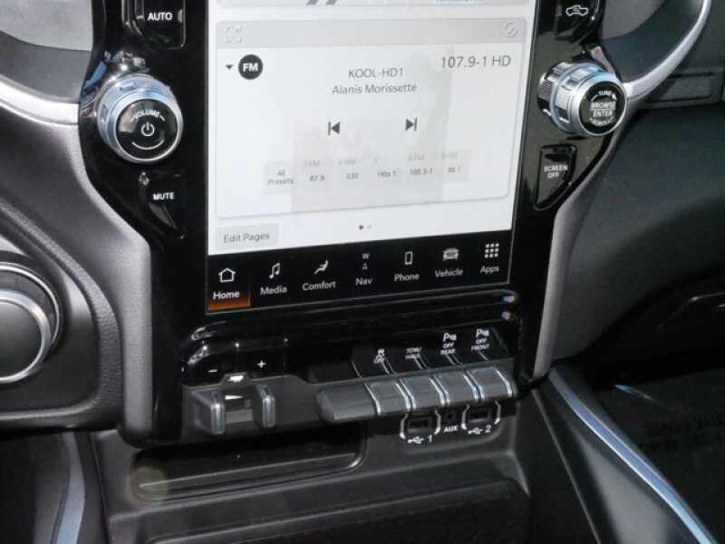 Grille Surround 1 Chrome Texture 1 Black, Secondary Active Grille Shutters, 800 Amp Maintenance Free Battery, EcoDiesel Badge, Heavy Duty Engine Cooling, 250 Amp Alternator, GVWR 7,200 lbs (DISC), Dual Rear Exhaust w/Bright Tips, Thermal Rear Axle, SiriusXM Radio Service, Rear Window Defroster, ParkSense Front/Rear Park Assist w/Stop, Rear View Auto Dim Mirror, Power Adjustable Pedals, Rear Power Sliding Window, Rear Dome w/On/Off Switch Lamp, Front Fog Lamps, Glove Box Lamp, Media Hub w/2 Charge Only USBs, Power 8-Way Driver Seat, Auto Dim Exterior Driver Mirror, Heated Front Seats, Heated Steering Wheel, Class IV Receiver Hitch, Security Alarm, Black Premium Power Mirrors, Big Horn IP Badge, Remote Start System, SiriusXM Satellite Radio, 400W Inverter, 9 Amplified Speakers w/Subwoofer, Radio Uconnect 5 Nav w/12.0 Display, Google Android Auto, USB Host Flip, Disassociated Touchscreen Display, HD Radio, Integrated Center Stack Radio, For More Info, Call 800-643-2112, Connectivity - US/Canada, 12 Touchscreen Display, GPS, WHEELS 20 X 9 ALUMINUM CHROME CLAD, WHEELS 20 X 9 ALUMINUM CHROME CLAD (WRK), Front LED Fog Lamps, LED Reflector Headlamps, LED Taillamps, Power 8-Way Driver Seat, Center Console Parts Module, Bucket Seats, Manual Adjust 4-Way Front Passenger Seat, Full Length Floor Console, Rear Center Armrest, Power 2-Way Driver Lumbar Adjust, 33 GALLON FUEL TANK, TRAILER BRAKE CONTROL, 3.92 REAR AXLE RATIO, TRANSMISSION 8-SPEED AUTOMATIC (8HP75).