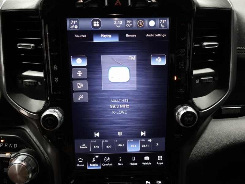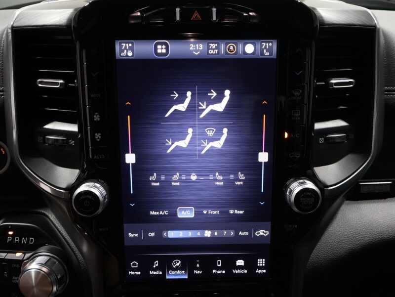 This Ram 1500 is well equipped and includes these key features and benefits, Heated and Cooled Seats, Navigation System, Touchscreen Controls, Backup Camera, Automatic Headlights, Bluetooth Handsfree, AWD / 4x4 / Four Wheel, 12 Touchscreen Display, 2nd Row In Floor Storage Bins, 4G LTE Wi-Fi Hot Spot, Apple CarPlay, Auto High Beam Headlamp Control, Blind Spot & Cross Path Detection, Connected Travel & Traffic Services, Connectivity - US/Canada, Disassociated Touchscreen Display, Electric Shift-On-Demand Transfer Case, Foam Bottle Insert (Door Trim Panel), For Details, Visit DriveUconnect.com, For More Info, Call 800-643-2112, Front Door Accent Lighting, Front LED Fog Lamps, Fully automatic headlights, Global Telematics Box Module (TBM), Google Android Auto, GPS Antenna Input, GPS Navigation, HD Radio, Integrated Center Stack Radio, Integrated Voice Command w/Bluetooth, Laramie Level 1 Equipment Group, LED Reflector Headlamps, ParkSense Front/Rear Park Assist w/Stop, Quick Order Package 27H Laramie, Radio Uconnect 5 Nav w/12.0 Display, Rain Sensitive Windshield Wipers, Rear Door Accent Lighting, Rear Power Sliding Window, Rear Window Defroster, Remote Tailgate Release, SiriusXM Radio Service, SiriusXM w/360L, USB Host Flip.