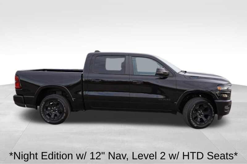 Diamond Black Crystal Pearl Coat Exterior Paint * Big Horn Package 23Z * Uconnect 5 Nav with 12.0 Inch Touch Screen Display * Cluster with 7.0 Inch TFT Color Display * 9 Amplified Speakers with Subwoofer * Night Edition * 275/55R20 OWL All Season Tires * 20 Inch x 9.0 Inch Aluminum Painted Clad Wheels * Anti Spin Differential Rear Axle * Accent Color Premium Power Mirrors * Wireless Charging Pad * Black Interior Accents * Big Horn Level 2 Equipment Group * Heated Front Seats * 8 Way Power Adjustable Driver Seat * 2 Way Power Lumbar Adjustable Driver Seat * 400W Inverter * Power Adjustable Pedals * Configurable Drive Mode * 2nd Row In Floor Storage Bins * Rear Power Sliding Window * Automatic Dimming Rear View Mirror * A/C with Dual Zone Auto Temperature Control * Automatic Power Folding Mirrors * Leather Wrapped Steering Wheel * Integrated Voice Command * Connected Travel and Traffic Services * Heated Steering Wheel * Power Tailgate Release * SiriusXM 360L * 115 Volt Auxiliary Rear Power Outlet * Front and Rear Rubber Floor Mats by Mopar * 3.55 Rear Axle Ratio * Trailer Brake Controller * Active Lane Management System * Adaptive Cruise Control with Stop and Go * Automatic High Beam Headlamp Control * Blind Spot and Cross Path Detection * Full Speed Forward Collision Warning Plus * Hill Start Assist * ParkSense Front and Rear Park Assist * ParkView Rear Back Up Camera * Pedestrian Emergency Braking * Remote Keyless Entry * Remote Start System * Push Button Start * Class IV Receiver Hitch * Trailer Sway Damping *