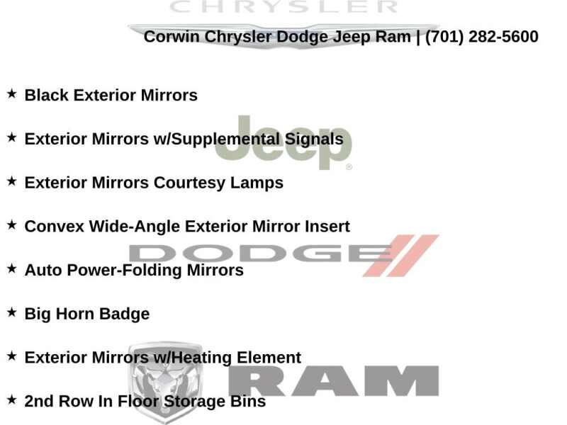 Corwin is the largest Chrysler Dodge Jeep Ram dealer in the region! We have a huge selection of new & used vehicles with financing options for everyone. Here at Corwin Chrysler Dodge Jeep Ram we're not only here to help you find your next car, we are your go-to source for all things automotive! Our expert dealership staff is here to help you with auto financing, car maintenance and repairs, or even finding the right parts for your next DIY project. Stop by our new and used car dealership in Fargo today and find out why folks keep coming back! We're here to help you get into the vehicle of your dreams and keep it running its best for many miles. Corwin Chrysler Dodge Jeep Ram 301 38th St S, Fargo, North Dakota CorwinChryslerDodge.com Corwin - Family Driven for Over 100 YearS.